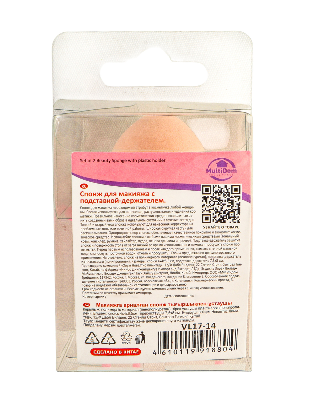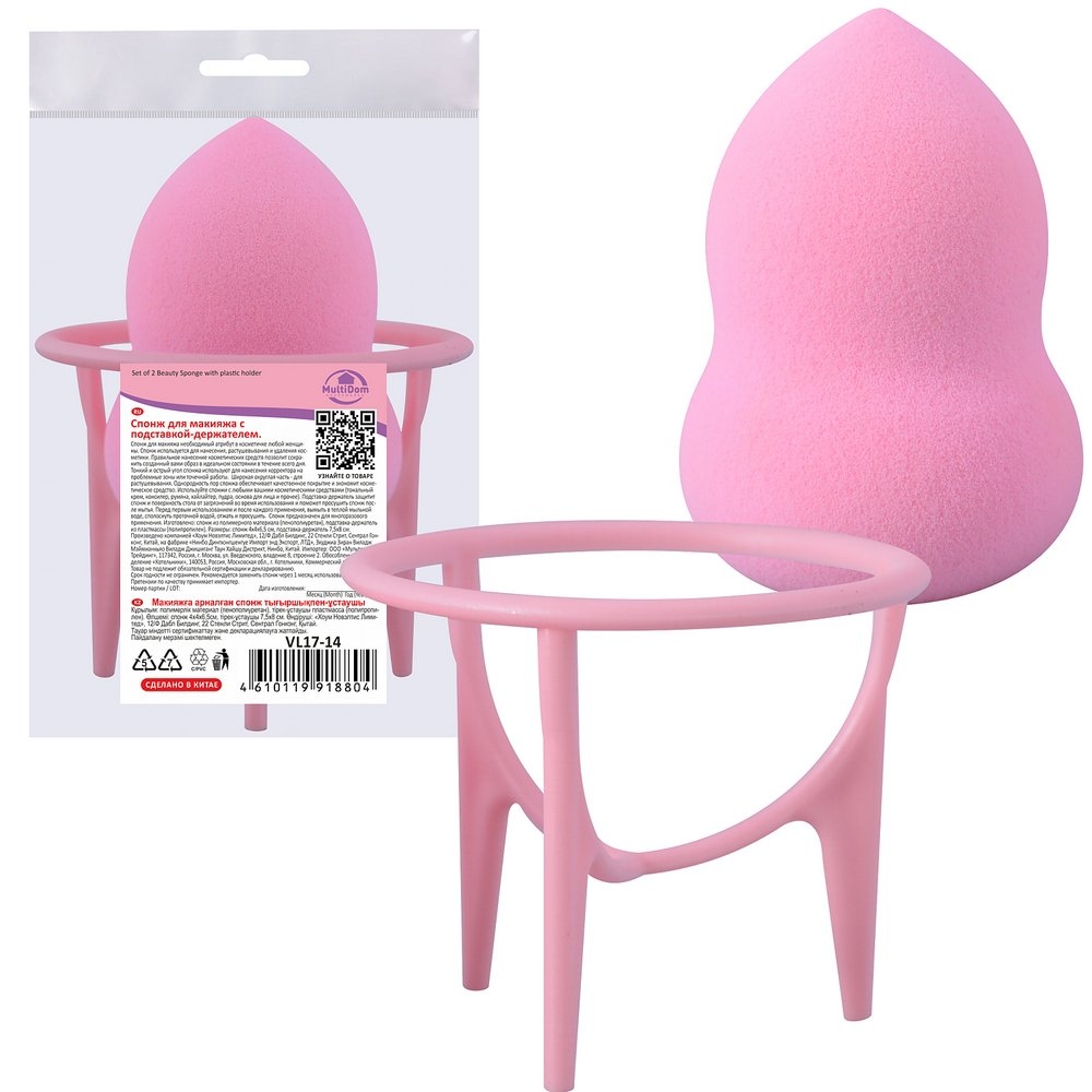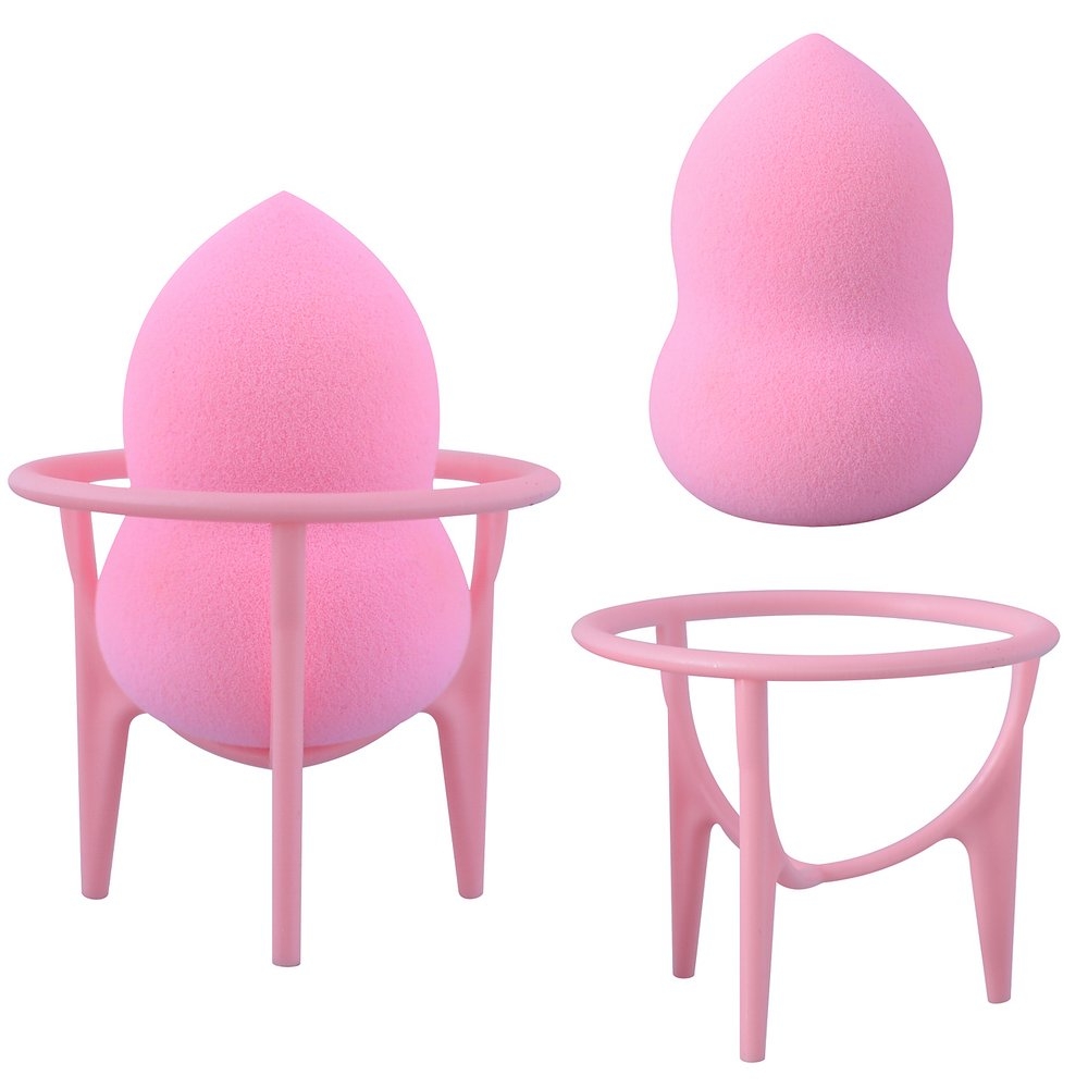 Тонкий и острый угол спонжа используют для нанесения корректора на проблемные зоны или точечной работы. Широкая округлая часть – для растушевывания. Однородность пор спонжа обеспечивает качественное покрытие и экономит косметическое средство. Используйте спонжи с любыми вашими косметическими средствами (тональный крем, консилер, румяна, хайлайтер, пудра, основа для лица и прочее). Подставка-держатель защитит поверхность стола от загрязнений во время использования и поможет просушить спонж после мытья.