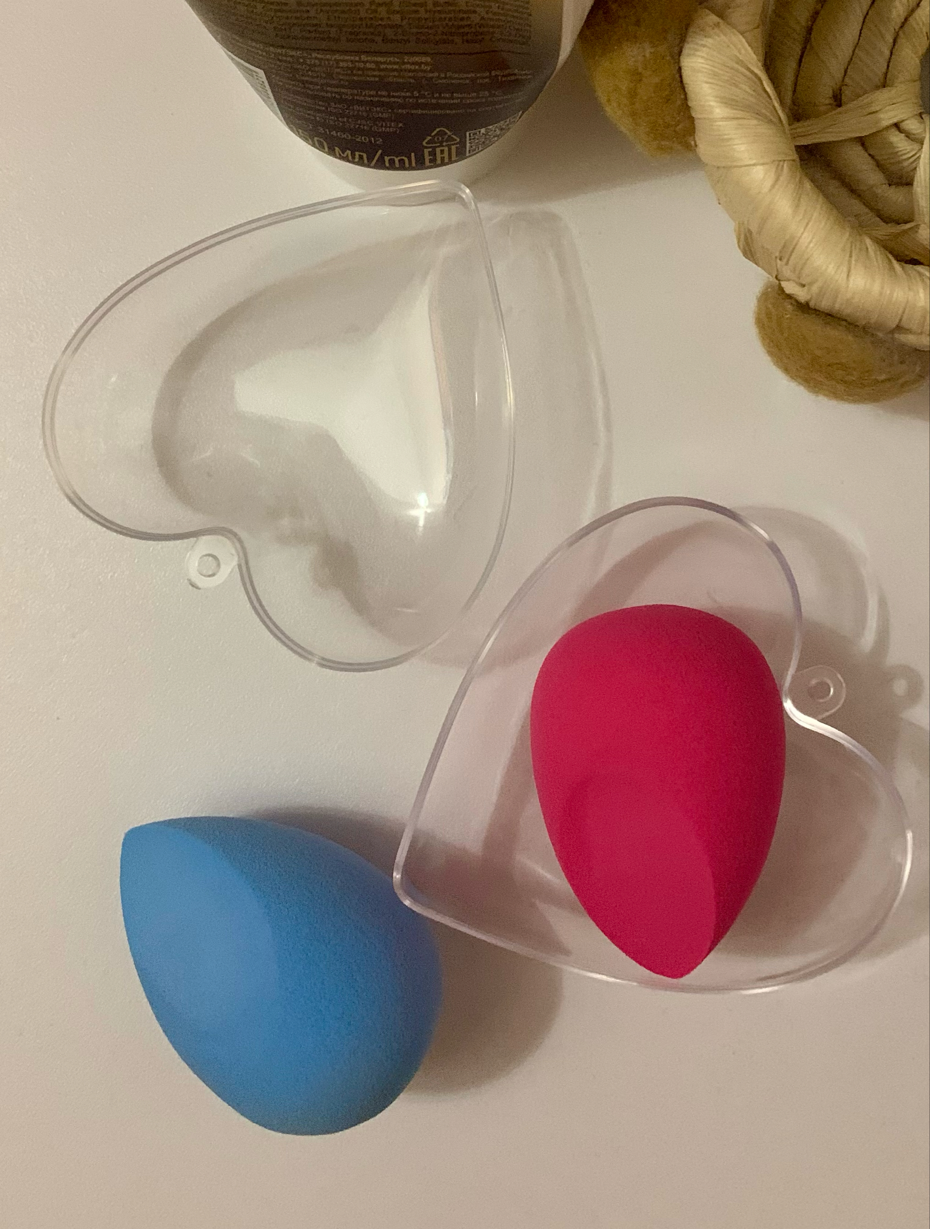 Размеры: спонж 4х6 см, контейнер 7,5х8 см.