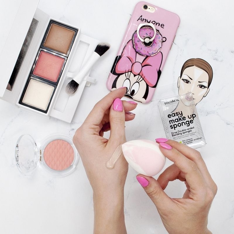 Удобная форма спонжа позволяет проработать все участки на лице.