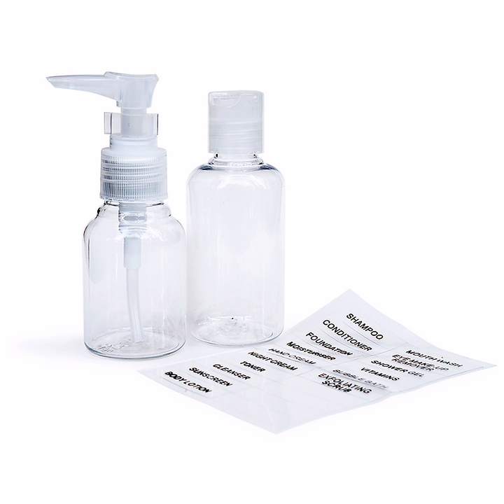 Пластиковые флаконы малой ёмкости удобные для транспортировки и хранения косметических средств во время путешествий, командировок, посещения фитнеса и т.д.