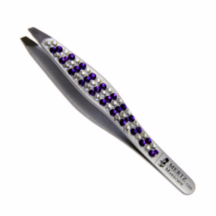 Скошенный пинцет немецкого бренда Mertz прекрасно подходит для домашнего и профессионального ухода. Пинцет изготовлен из высококачественной стали, инкрустирован стразами. Грани пинцета цепляют даже самые тонкие, невидимые волоски.