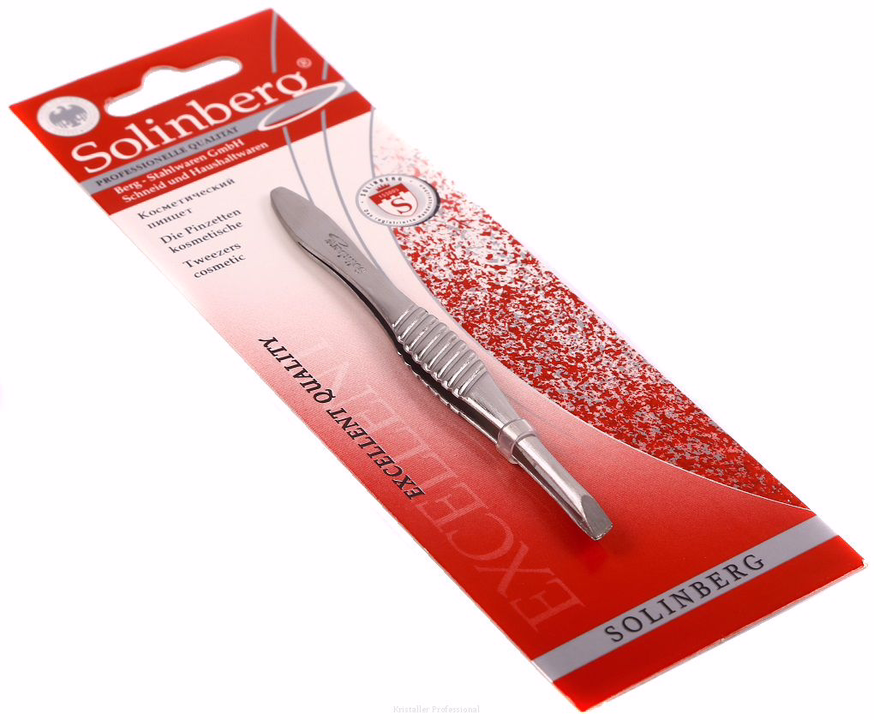 Пинцет для бровей Solinberg серебристый, наклонное окончание.