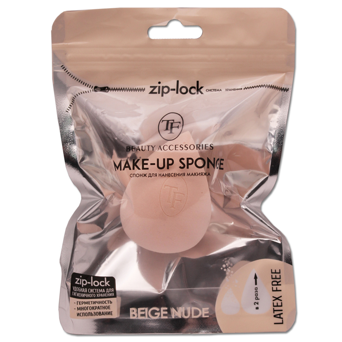 Технология использования "намочить-сжать-нанести" позволяет равномерно и экономно наносить тональные, корректирующие средства.