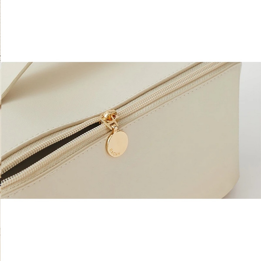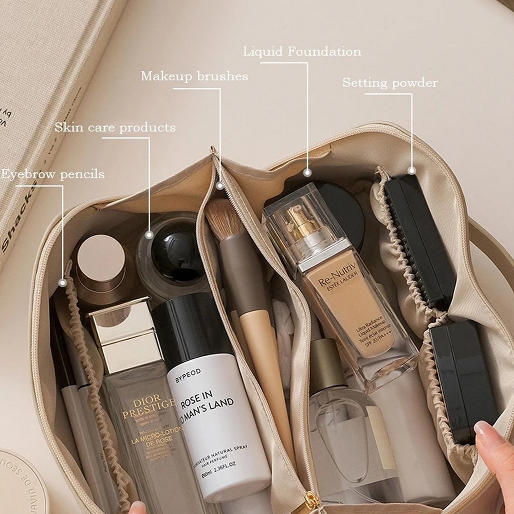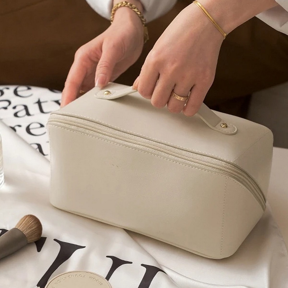Функциональность модели сумочки значительно усиливается благодаря раскладному дизайну. Открывая косметичку, вы обнаруживаете многофункциональное внутреннее пространство с продуманными отделениями, идеально подходящими для хранения косметики, аксессуаров и других мелочей. Широкое раскрытие сумки обеспечивает легкий доступ к косметике и аксессуарам. Теперь вы сможете быстро находить нужные вещи, не тратя время на поиск среди хаоса. Благодаря продуманной организации пространства, все продукты и инструменты можно удобно расположить, что позволяет поддерживать порядок и не терять время на сборы.