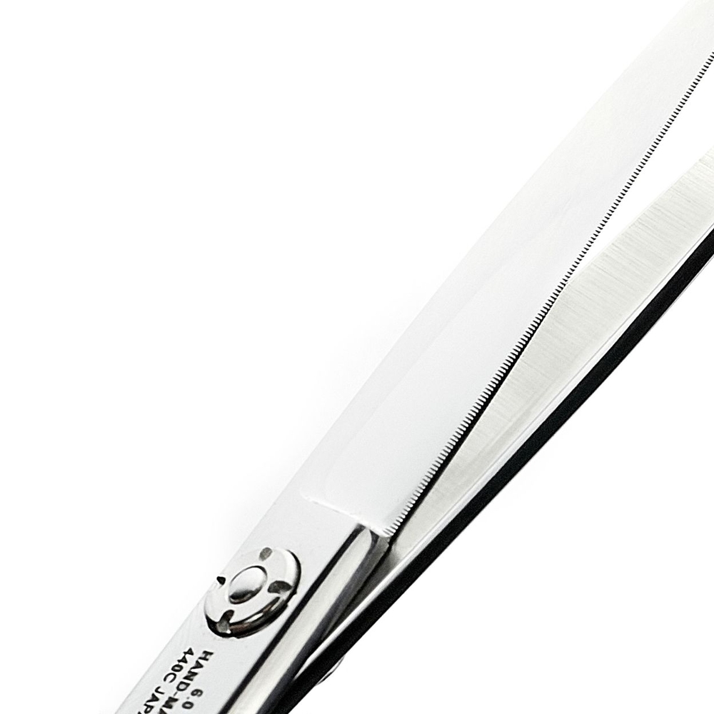 Назначение этих ножниц – выполнять четкий прямой срез, позволяя мастерам достигать великолепных результатов в стрижке. Инструмент был создан с целью облегчить труд современных стилистов и парикмахеров, помогая им доставлять клиентам именно тот результат, которого они ожидают. Для изготовления ножниц используется высококачественная японская сталь марки 440С, обладающая твердостью в диапазоне 58-60 HRC, что обеспечивает долговечность и надежность инструмента.