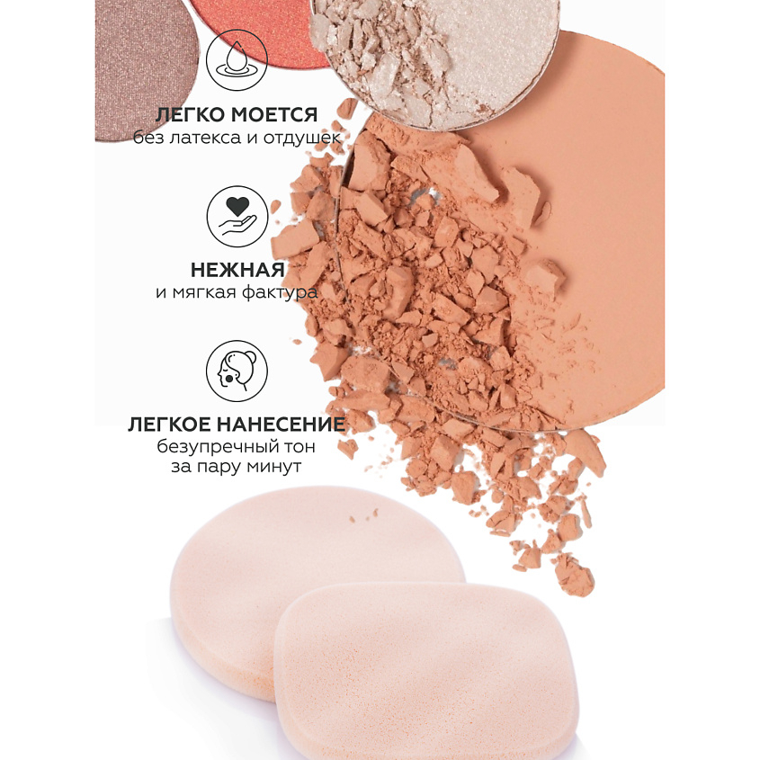 Спонжи предназначены для равномерного нанесения тональной основы, консилера или пудры, нежная и мягкая фактура спонжа прекрасно распределяет косметические средства, идеально покрывает кожу, скрываю мелкие несовершенства, позволяет использовать косметические средства экономно.