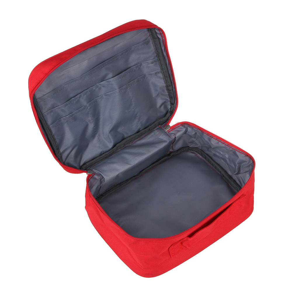 Продуманная внутренняя организация: верхний отдел с карманами для мелких предметов и основное пространство для бутылочек, тюбиков или бинтов. Застёжка-молния на всю длину обеспечивает надёжное закрытие и быстрый доступ к содержимому.