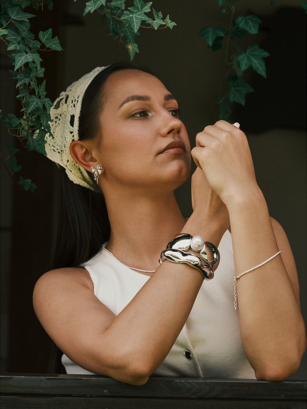 Повседневная одежда обретет новое дыхание с стильным браслетом-манжетой "Волны", излучающим свежесть и динамичность морского побережья. Создавая иллюзию мягких всплесков волн, этот аксессуар помогает женщинам добавить изюминку в любой образ, сделав его игривым и выразительным.