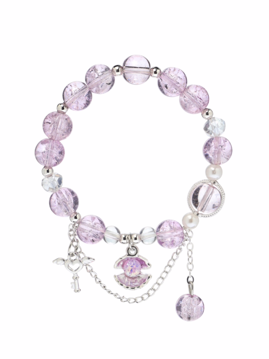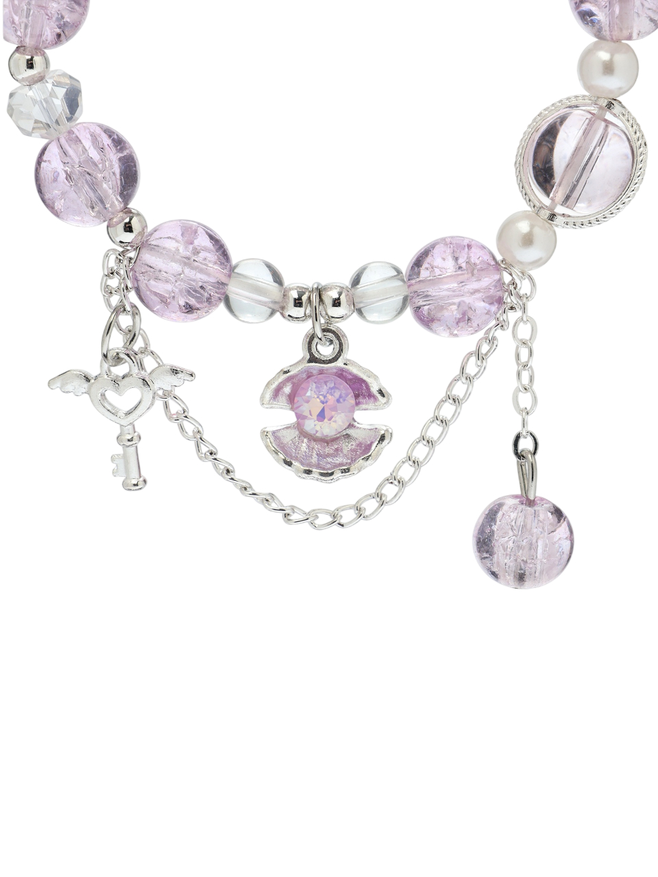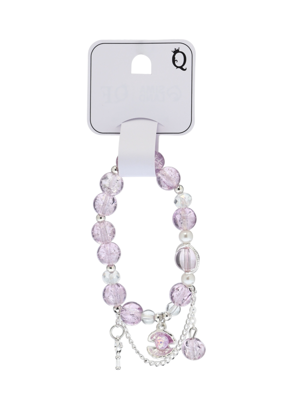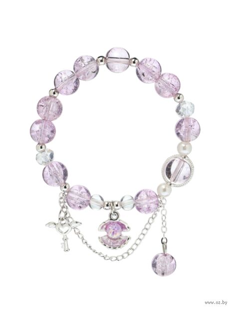 Браслет "Сахарный. Ракушка и шар" (чёрно-фиолтеовый в серебре)