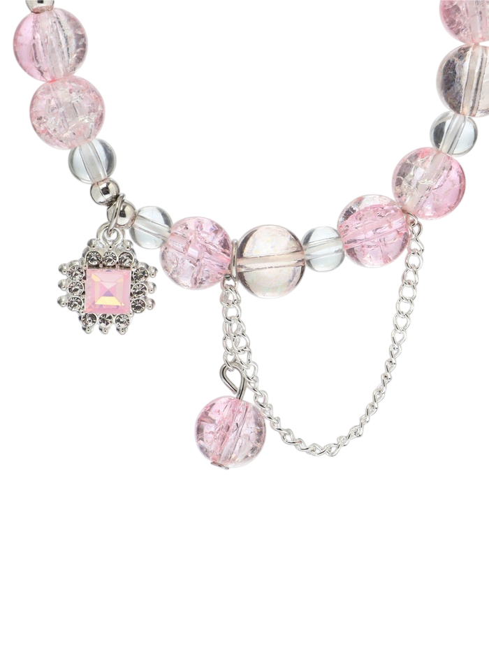 Браслет "Сахарный. Диск, сердечко и шар" (бело-голубой в серебре)