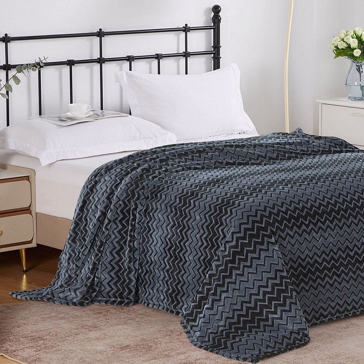 Плед-покрывало 180х200 см "Рускеала", велсофт "Volna" набивной, тиснение зигзаг, полиэстер 100%, плотность 270г/м2.