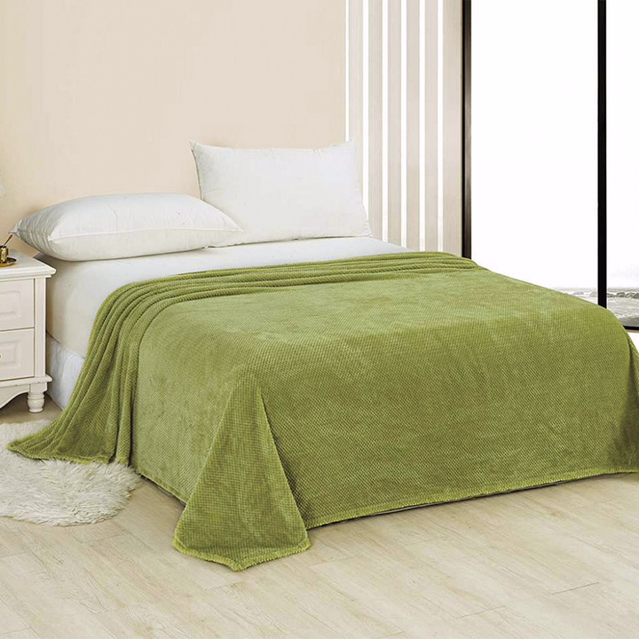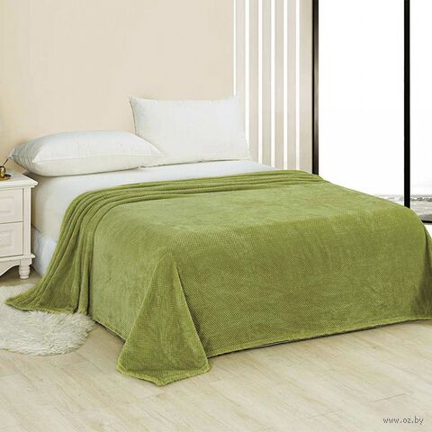 Плед-покрывало 200х220 см "Зеленый чай", велсофт "Pinoli" гладкокрашенный, полиэстер 100%, плотность 220г/м2.