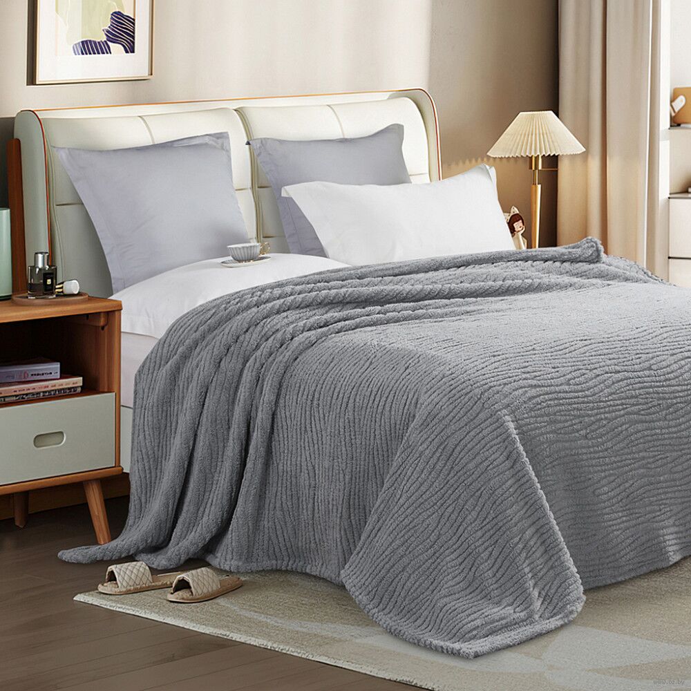 Плед-покрывало 180х200 см "Жемчужно-серый 15", велсофт "Gammi" гладкокрашенный, стриженый, полиэстер 100%, плотность 300г/м2.