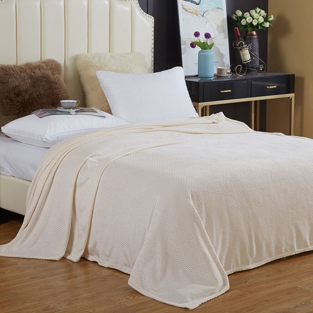 Плед-покрывало 200х220 см "Пудра", велсофт" "Luna" гладкокрашенный,, полиэстер 100%, софт принт, плотность 200г/м2.