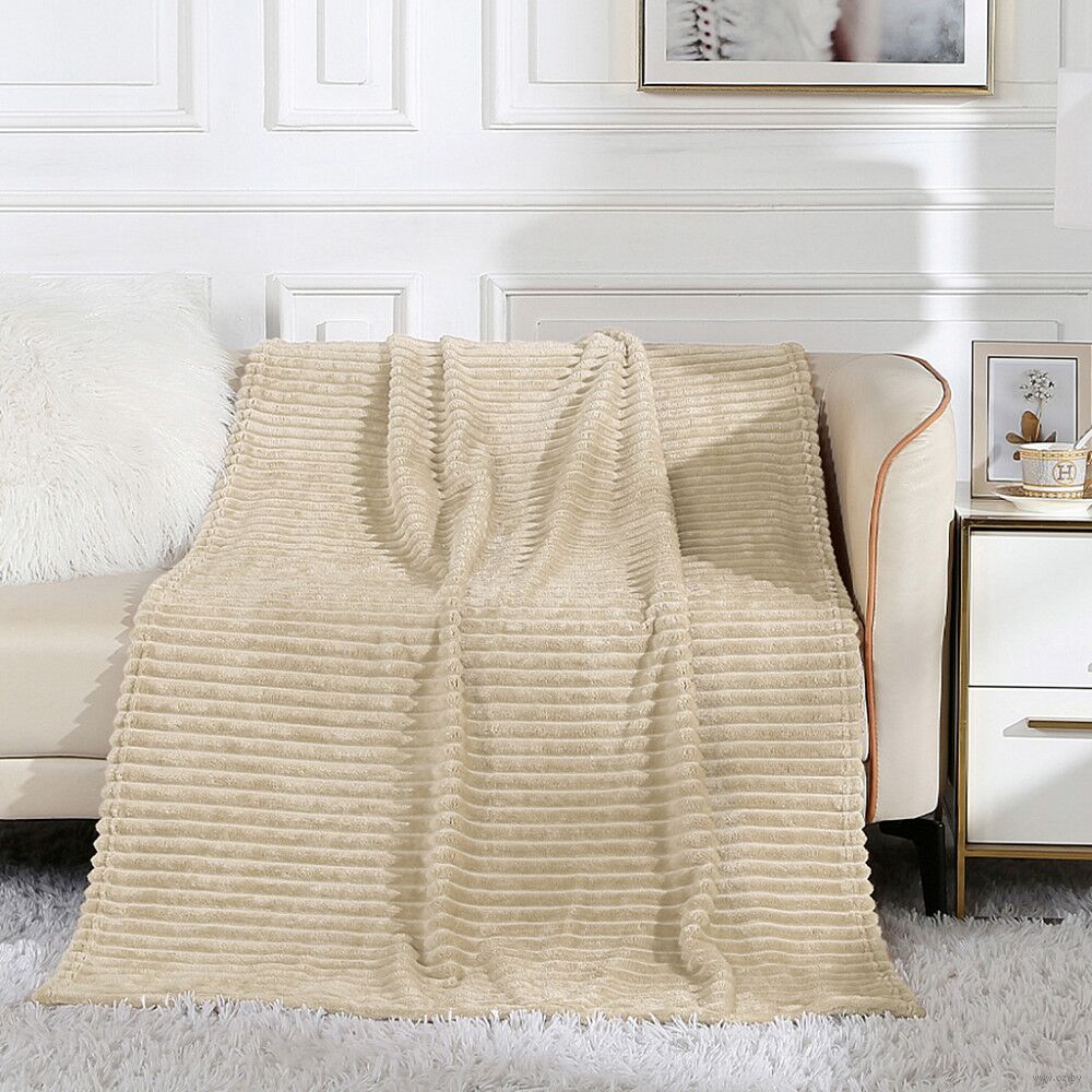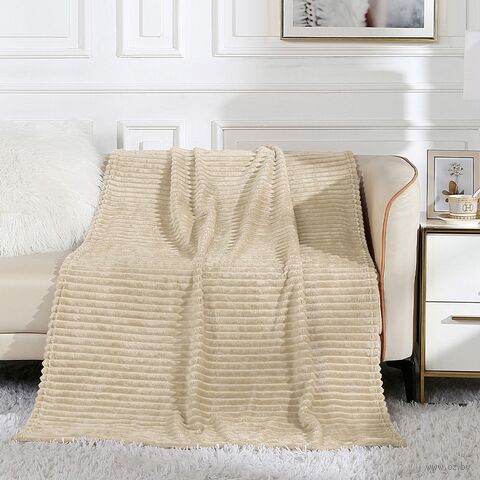 Плед-покрывало 180х200 см "Пудра", велсофт "Orrizonte" гладкокрашенный, тиснение полоса, полиэстер 100%, плотность 270г/м2.