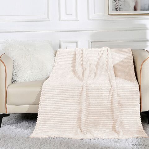 Плед-покрывало 180х200 см "Королевский жасмин", велсофт "Orrizonte" гладкокрашенный, тиснение полоса, полиэстер 100%, плотность 270г/м2.