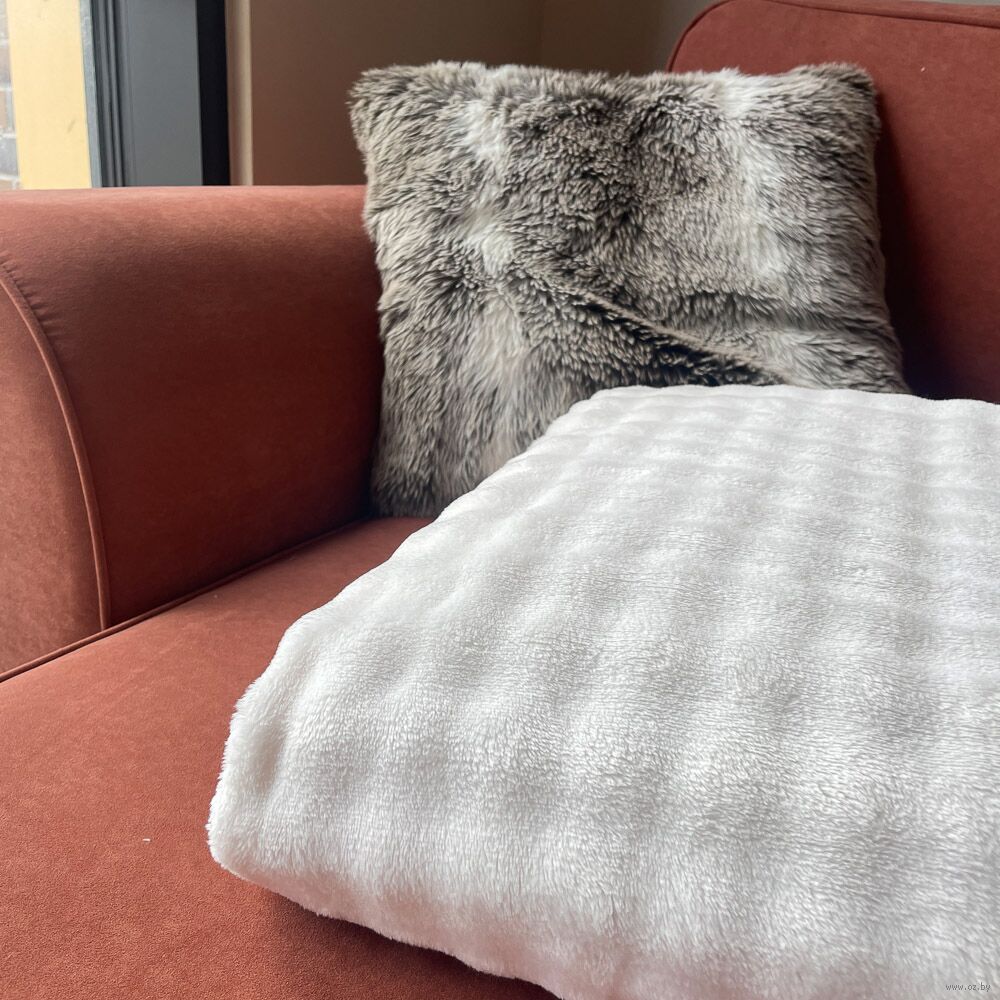 Плед будет красиво смотреться на кровати или диване, сочетаясь с декоративными подушками и другими предметами обстановки. Хорошо отстирывается, долго сохраняет форму, не линяет. Замечательный вариант новогоднего подарка для родных и близких.