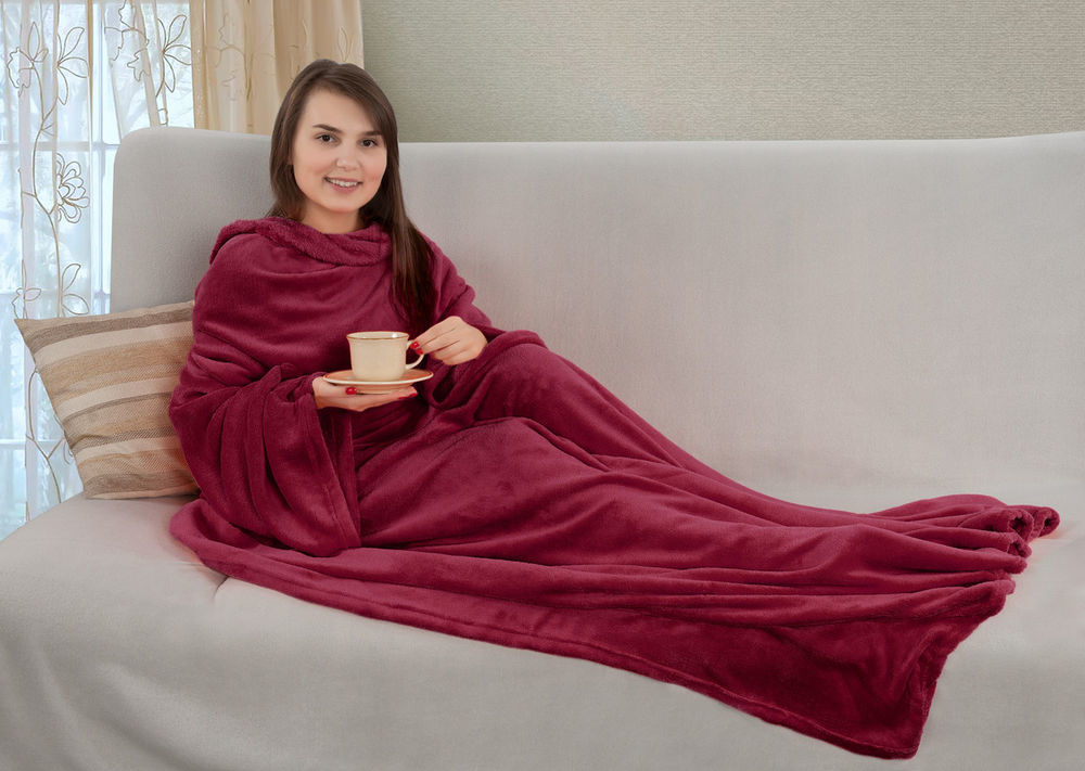 Очень удобный, необычный, мягкий и теплый плед с рукавами. В нем удобно читать, пользоваться ноутбуком, смотреть телевизор, играть в настольные игры и многое другое.