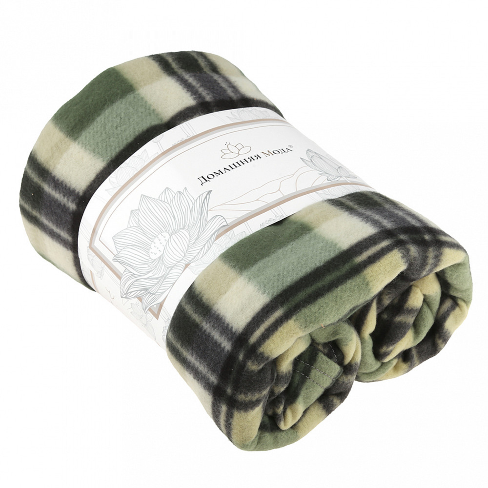 Плед-покрывало 150х200 см "Зеленый квадрат", флис набивной, полиэстер 100%, плотность 160 г/м2.