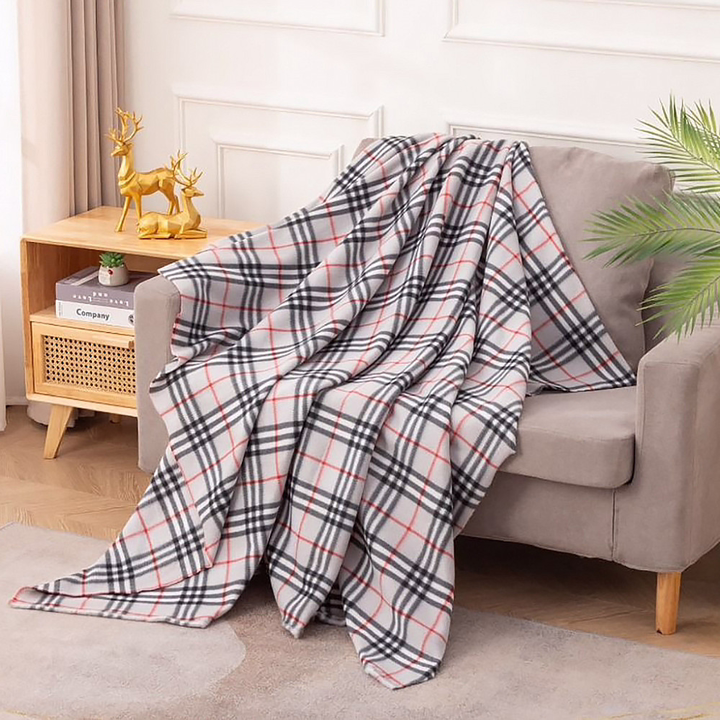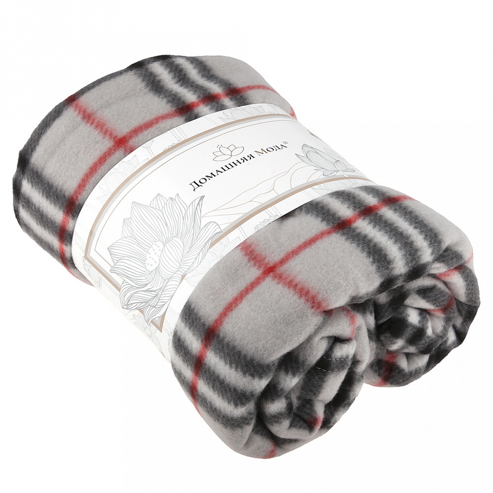 Плед-покрывало 150х200 см "Клетка бербери на сером", флис набивной, полиэстер 100%, плотность 160 г/м2.