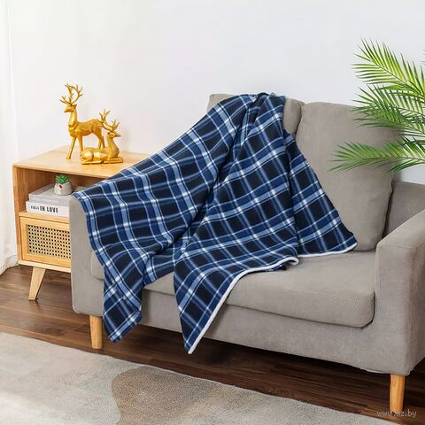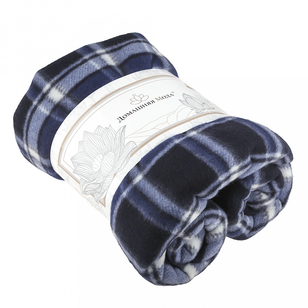 Плед-покрывало 150х200 см "Синяя клетка", флис набивной, полиэстер 100%, плотность 160 г/м2.
