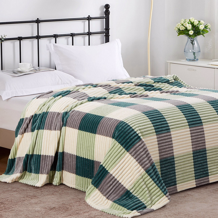 Плед-покрывало 180х200 см "Эвкалипт", велсофт "Orrizonte Print" гладкокрашенный, тиснение полоса, полиэстер 100%, плотность 270 г/м2.