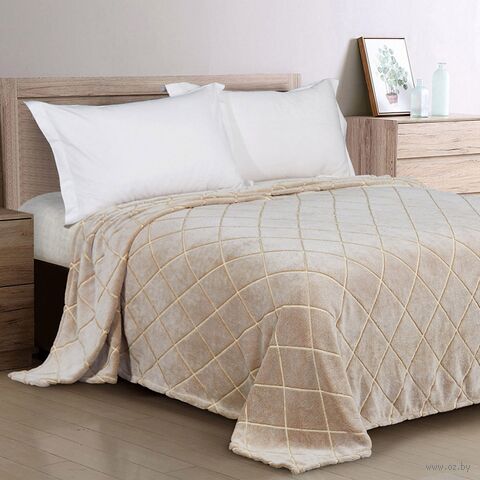 Плед-покрывало 240х200см "Ромбы, беж", велсофт "Bamboo" набивной, полиэстер 100%, плотность 260 г/м2.