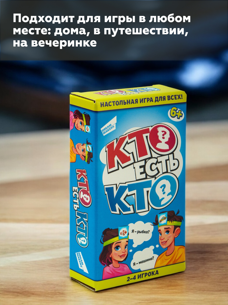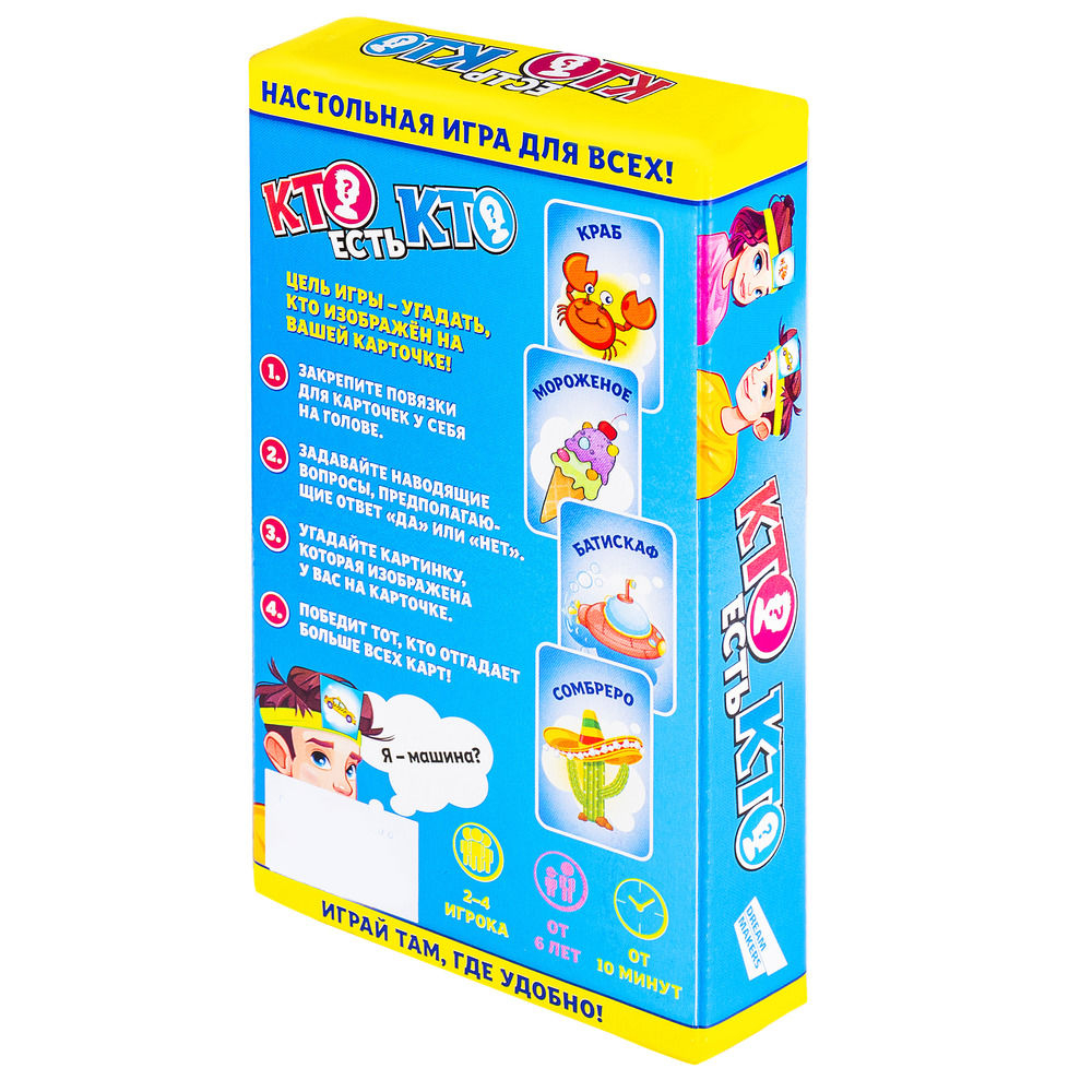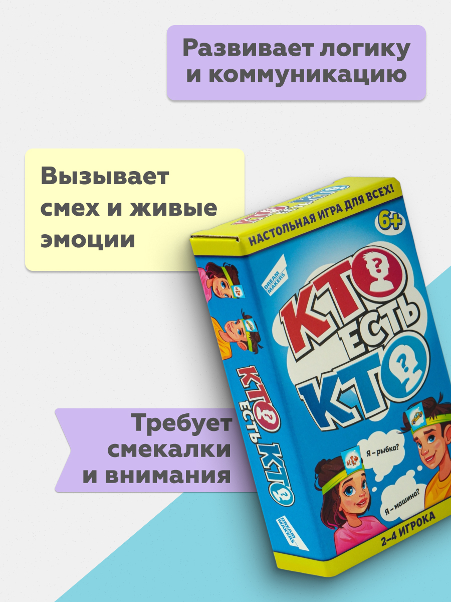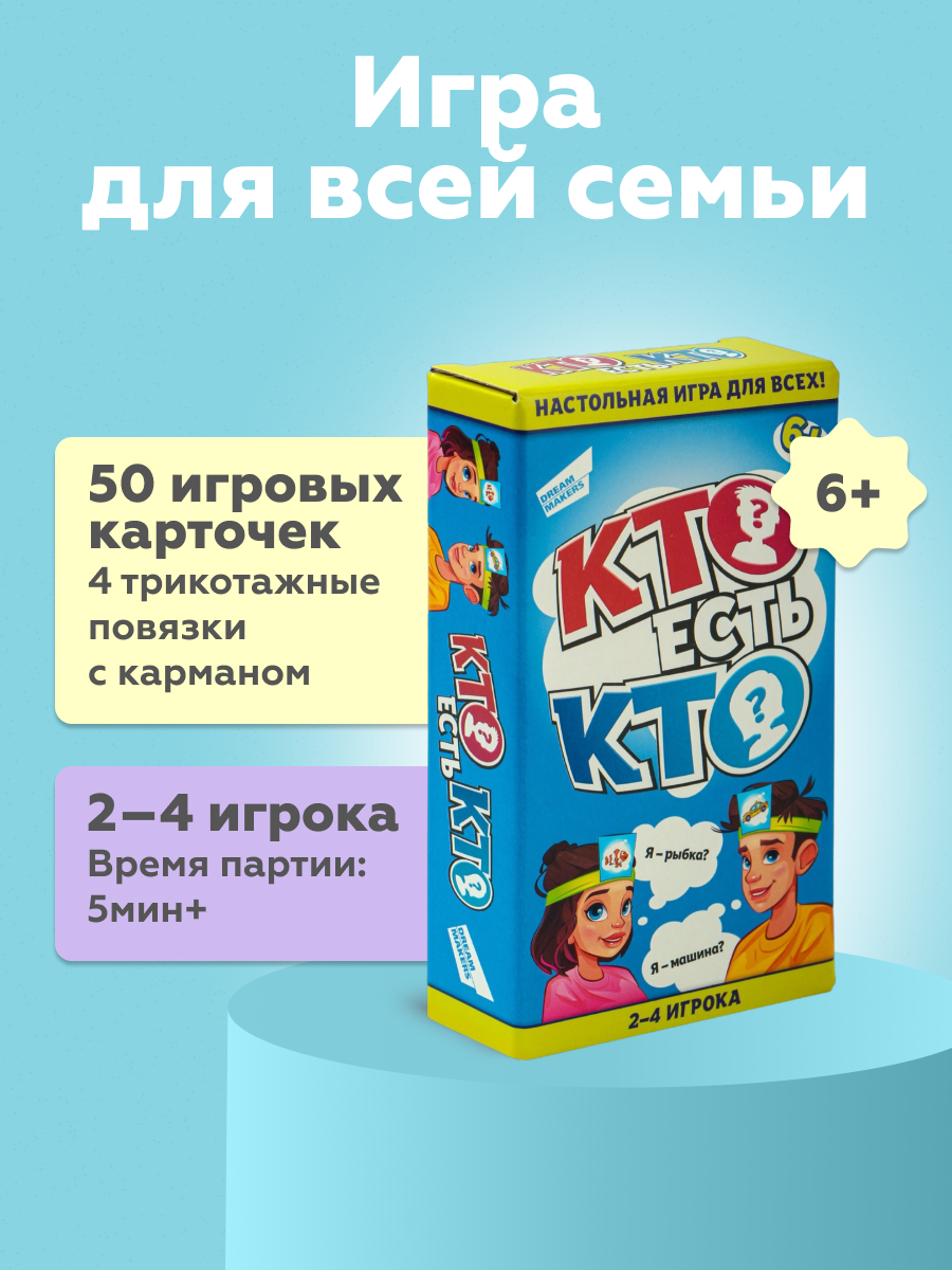 "Кто есть кто?" – весёлая настольная игра, в которой вам необходимо угадать, кто изображён на вашей карточке! Закрепите повязки для карточек у себя на голове, задавайте наводящие вопросы и отгадайте как можно больше карточек.