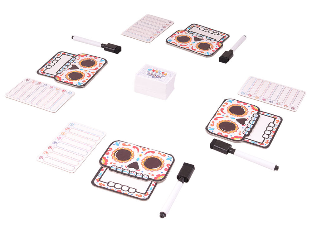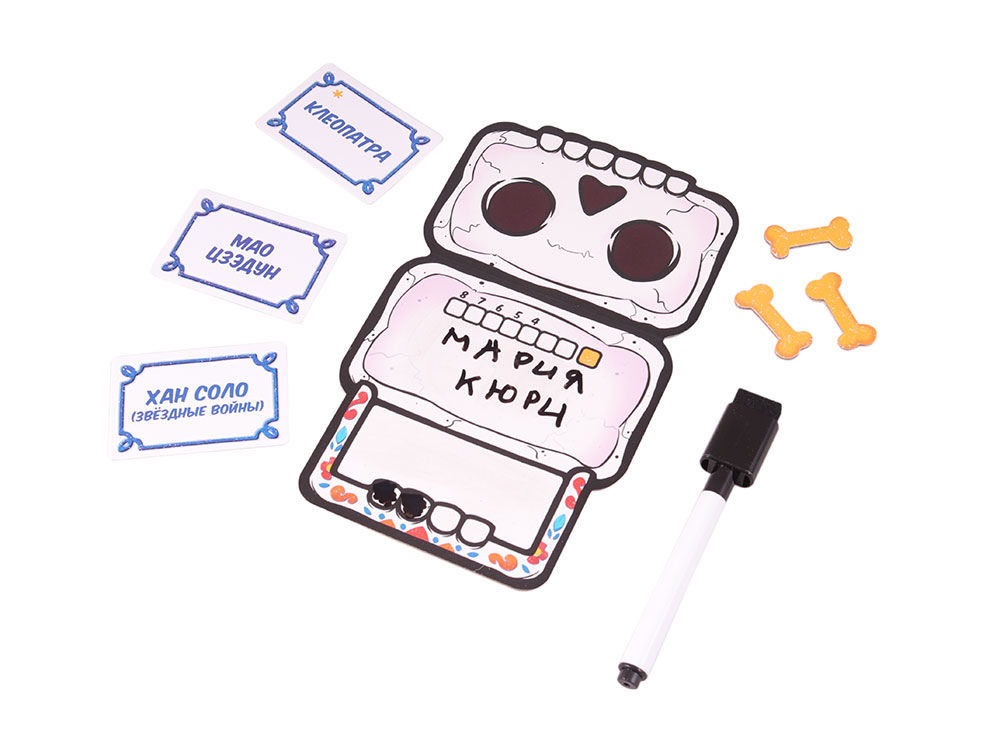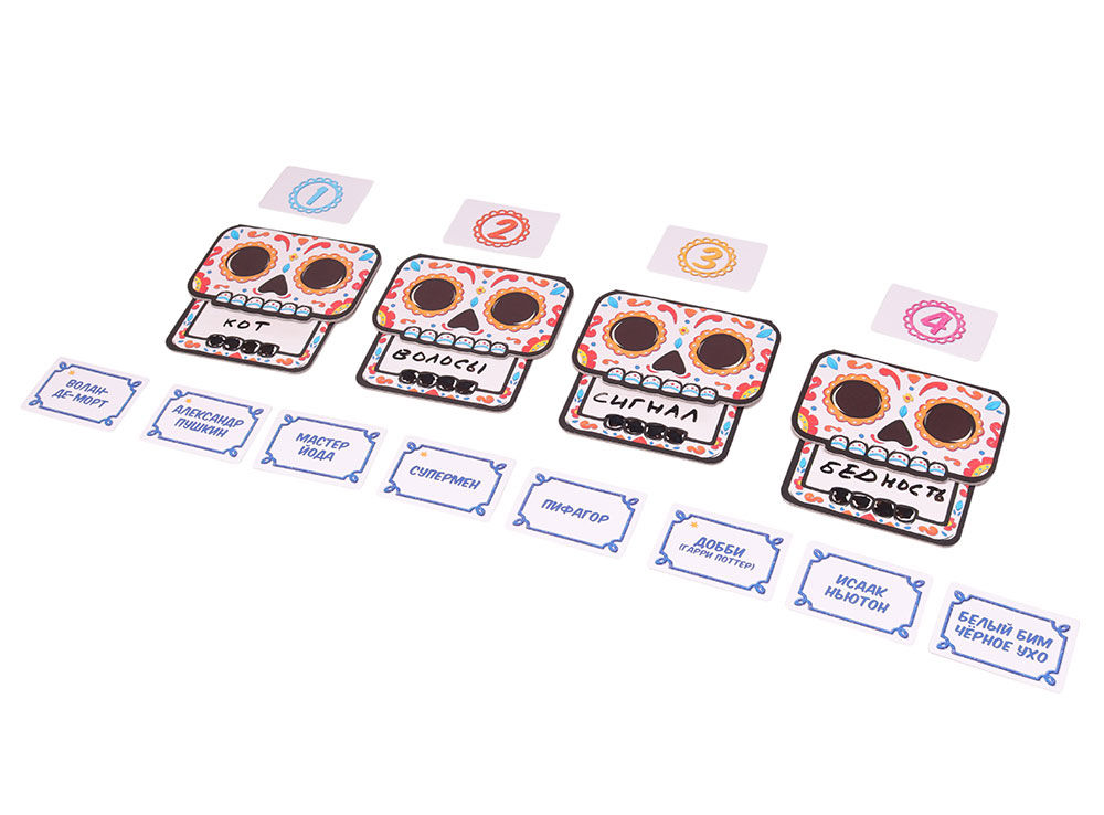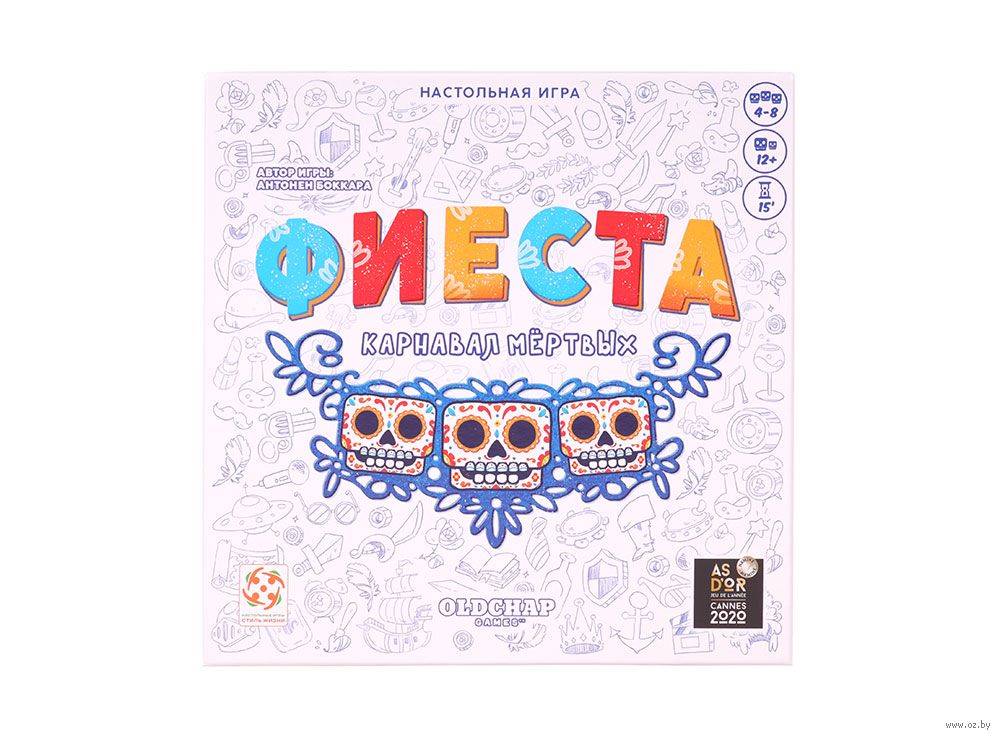 Фиеста. Карнавал мёртвых (Fiesta de los Muertos) – это новая кооперативная игра для большой компании. Цель игры – угадать как можно больше исторических личностей и известных персонажей, опираясь на подсказки-ассоциации, сделанные другими игроками. Игра объединяет в себе механики игр на воображение и игр, задействующих логическое мышление и дедукцию. Это идеальный вариант подарка на Хэллоуин и просто хорошее развлечение для любой вечеринки с друзьями.
