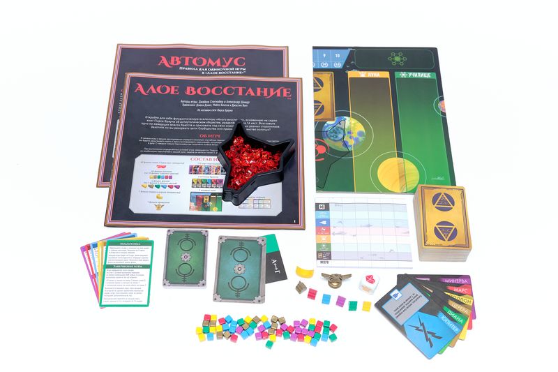 "Алое восстание" предлагает оригинальный игровой механизм по сбору победных комбинаций из карт общей колоды, представляющих собой персонажей вселенной. Создание "идеального братства" заключается в подборе максимально выгодных и эффективных карт на руке игрока. Добирая карты персонажей из общей колоды и разыгрывая их в локациях на поле, вы получаете различные бонусы и преимущества, но конечной целью является продуманный подбор вашей финальной руки.