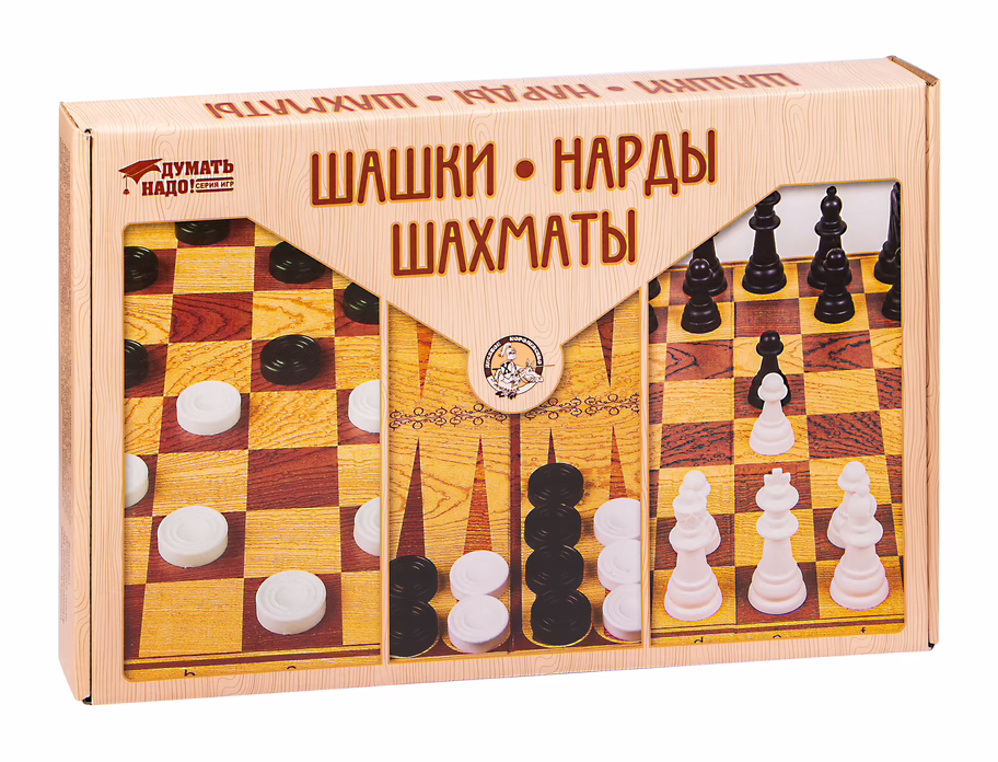 Шашки, нарды, шахматы 3в1 – это набор красиво оформленных классических настольных игр для вашего ребенка.