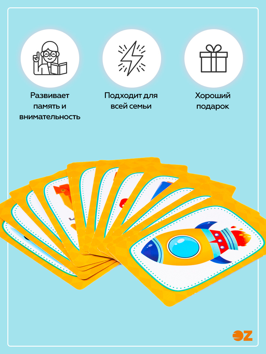 Ищите пары одинаковых карточек с яркими предметами среди 28 картонных карточек и весело проводите время всей семьёй!