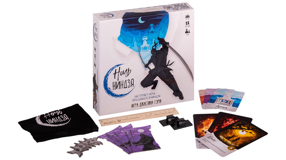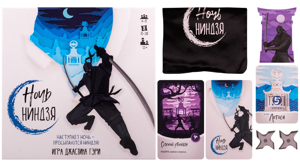 "Ночь Ниндзя" – это азартная игра со скрытыми ролями. Два клана ниндзя борются за свою честь. Ваша задача – сразить противников прежде, чем они разберутся, кто есть кто. Проблема в том, что вы и сами этого не знаете!