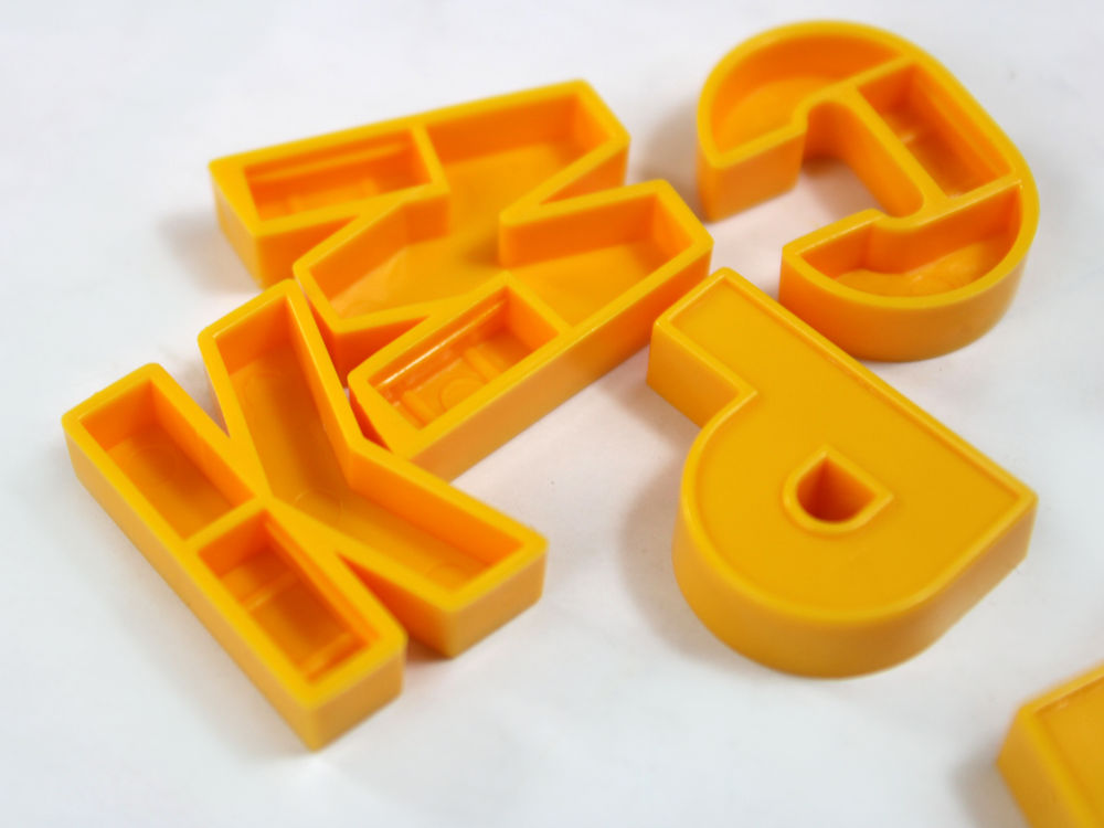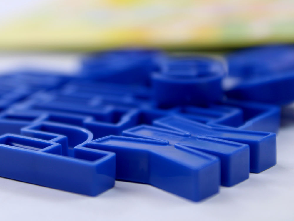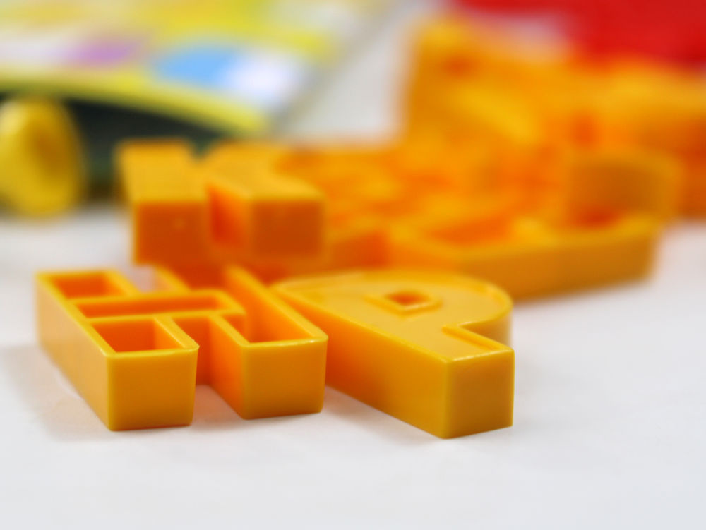 пластиковые буквы без магнитов – 49 шт. (высота 2,5 см) желтого, синего и красного цветов