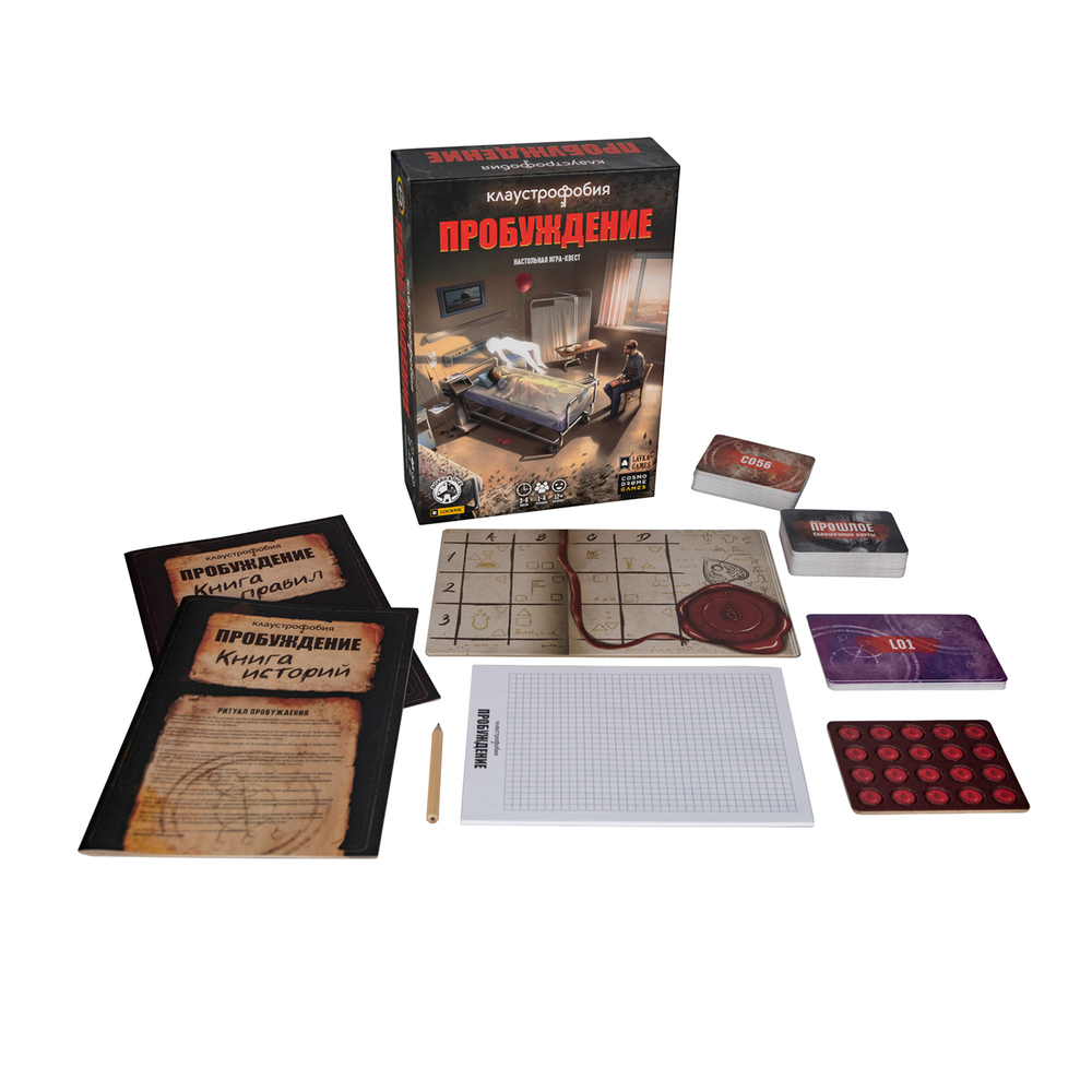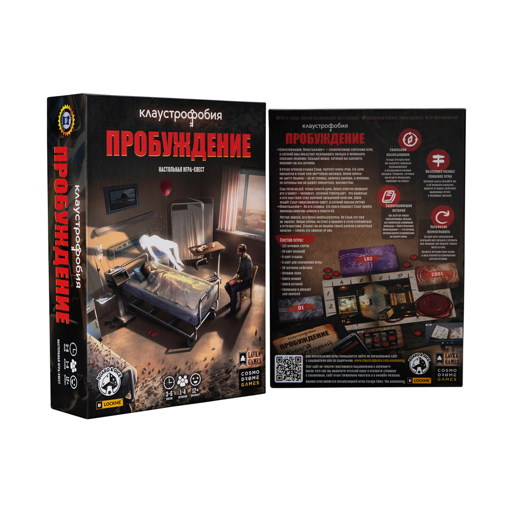 "Клаустрофобия. Пробуждение" – это карточная игра, основанная на концепции "побега из комнаты", но Вы не ограничены временем, когда дело доходит до завершения этого приключения, поскольку игра сосредоточена на истории и исследовании, в процессе которых вы решаете головоломки и делаете свой выбор, погружаясь при этом все глубже.