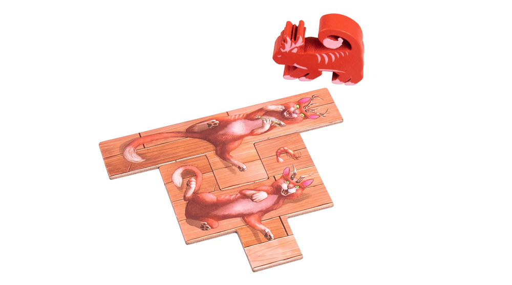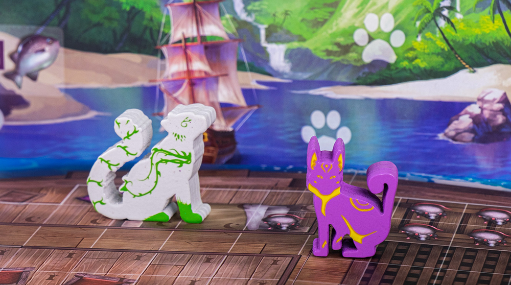 Каждой деревянной кошечке по вкусной рыбке. Уберите картонные жетоны подальше, они вам больше не пригодятся. Ведь есть фигурки рыбы из дерева, которые легко выманят из зарослей даже самых притязательных обитателей острова.