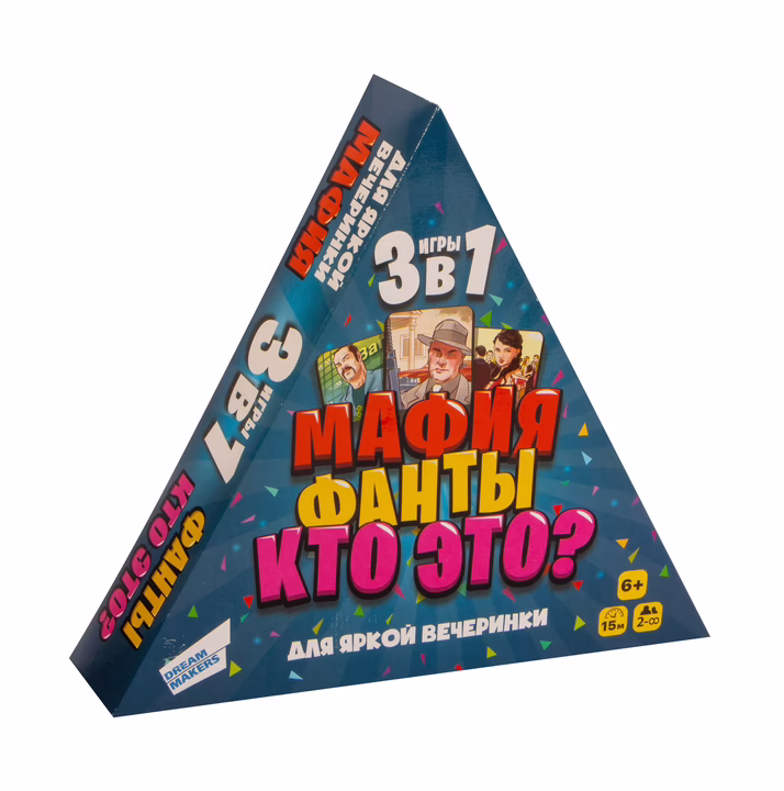 В комплект входят такие игры как "Мафия" – командная ролевая игра, повествующая о непримиримом противостоянии Мафии и Мирных жителей, "Фанты" – самые лучшие и интересные задания на смекалку, которые помогут проявить себя с новой стороны и провести время весело, "Кто это?" – увлекательная игра, в которой игроки задавая вопросы, угадывают, кто или что изображено у них на карточках.