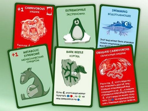 Кубики, кроме количества еды на раунд, также задают количество убежищ, позволяющих скрываться от хищников, и количество паразитов, которые заражают животных (если их количество в популяции велико, животных определённых видов – а понятие биологического вида введено в игру – ждёт вымирание). Хищники в новой версии игры делятся на обычных и облигатных. Вторые могут выжить, только охотясь на других животных.