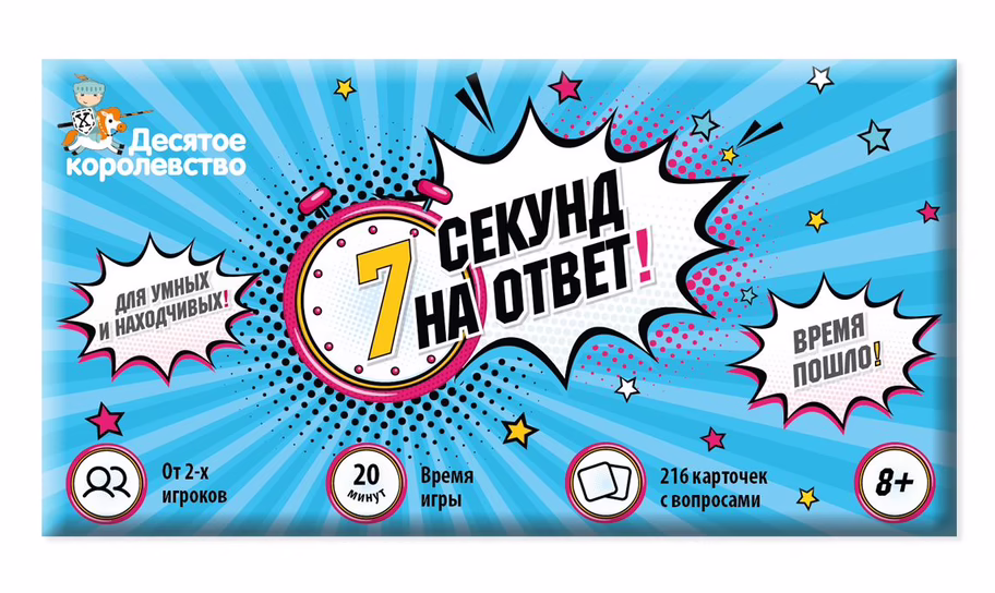 Настольная игра "7 секунд на ответ!" – это игра для большой компании, в которой вы можете блеснуть знаниями и проявить свою находчивость.