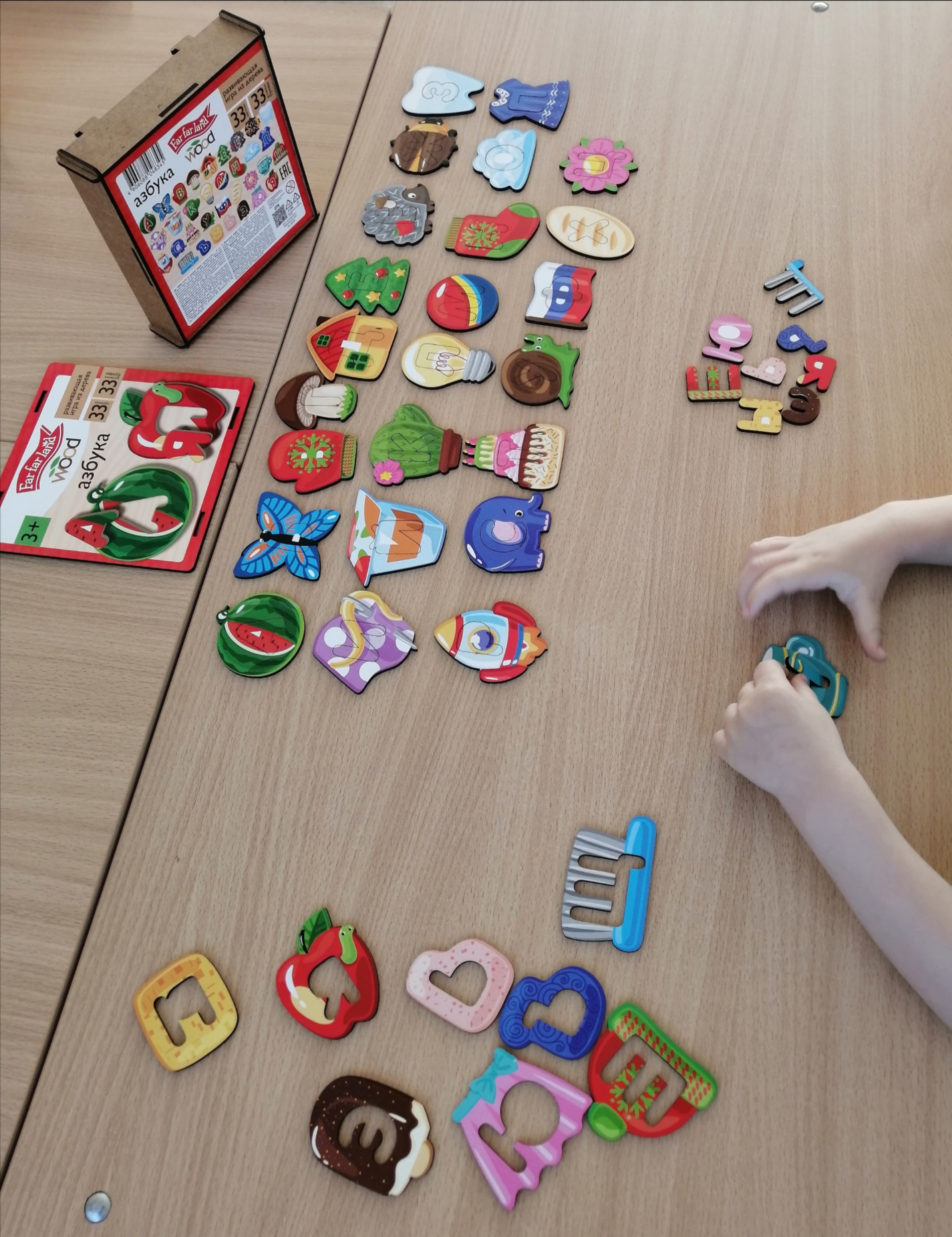 Играя в "Азбуку" ребенок изучает алфавит, тренирует визуальную память, учится терпению, усидчивости. Соединение деталей развивает мелкую моторику рук и наглядно-образное мышление.