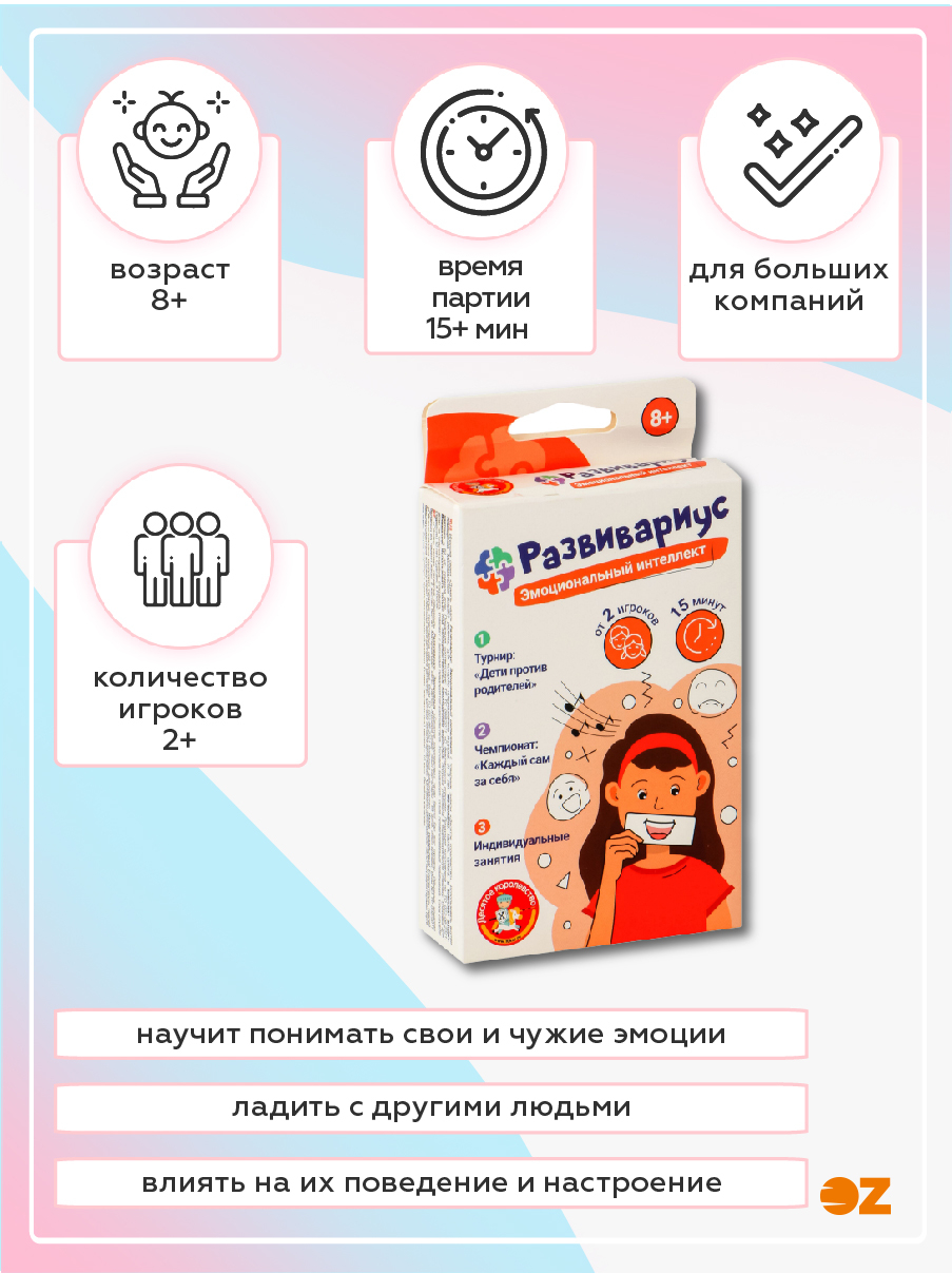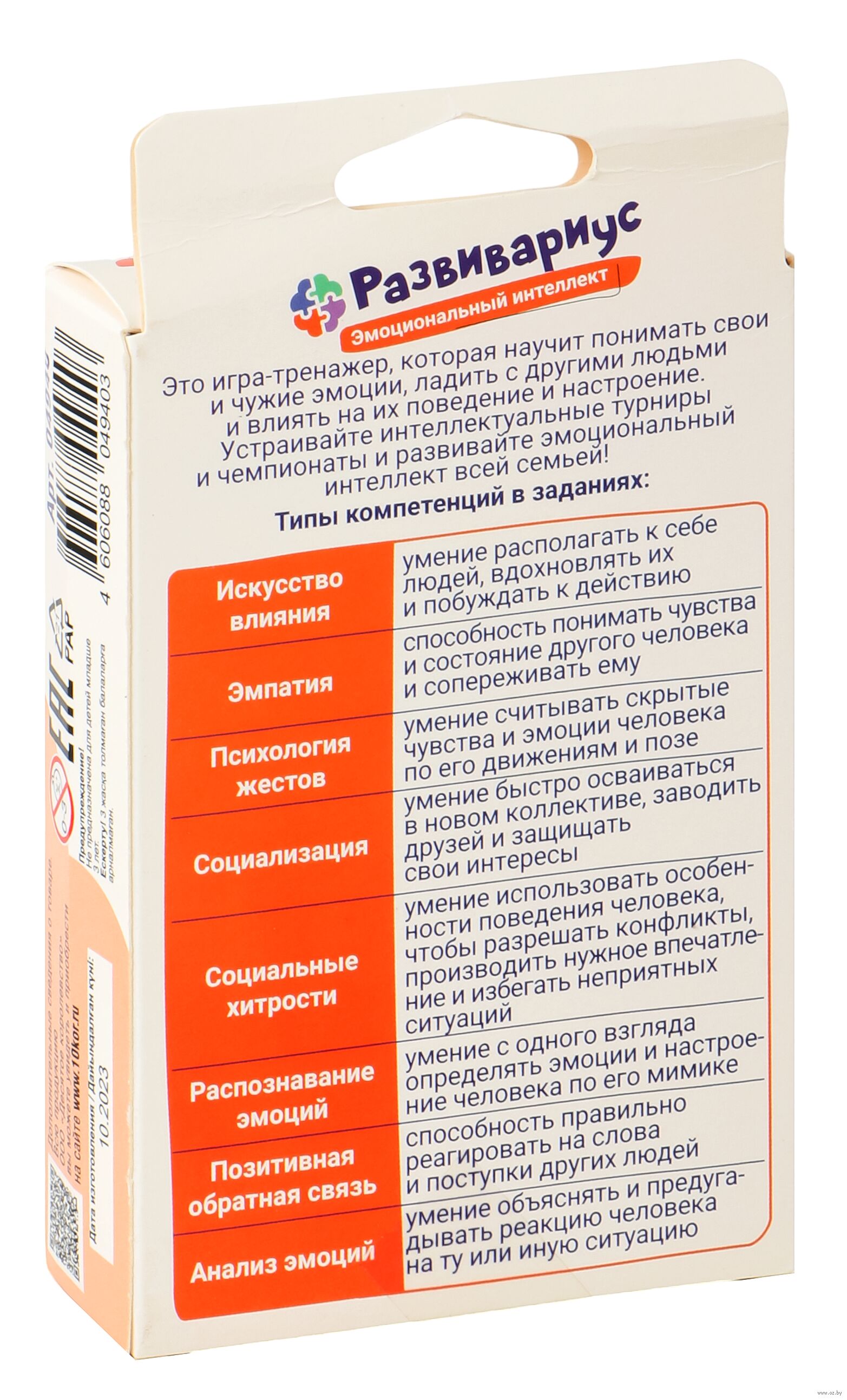 Настольная игра для детей "Развивариус. Эмоциональный интеллект" – это игра, которая научит понимать свои и чужие эмоции, ладить с другими людьми и влиять на их поведение и настроение.