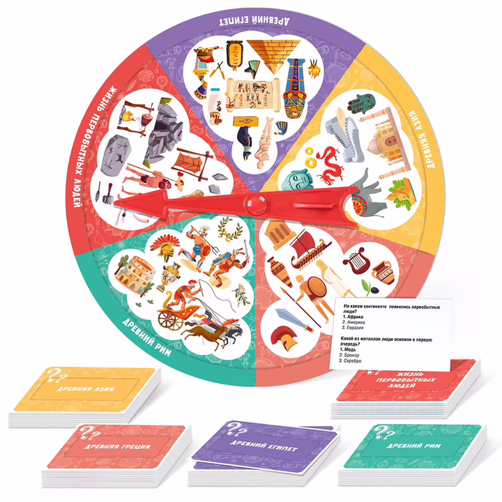 С настольной игрой-викториной "История Древнего мира" вы сможете проверить уровень знаний о жизни первобытных людей, узнать новые факты о Древнем Египте, Древней Греции, Древнем Риме и Древней Азии.