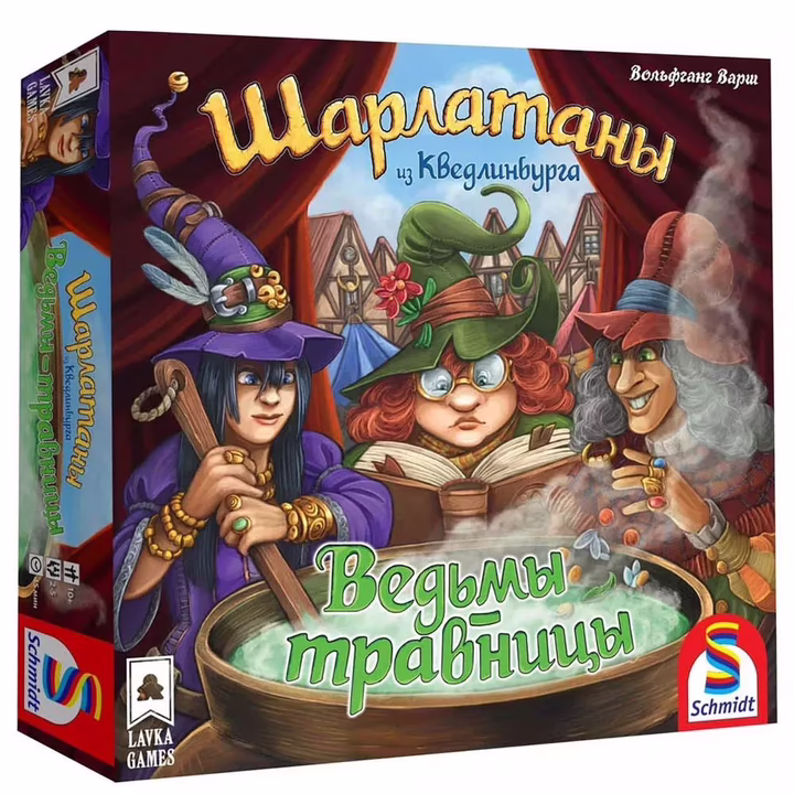 Это дополнение для игры "Шарлатаны из Кведлинбурга" добавит в игру возможность играть впятером, новый ингредиент, а также возможность обратиться за помощью к одной из 12 ведьм.