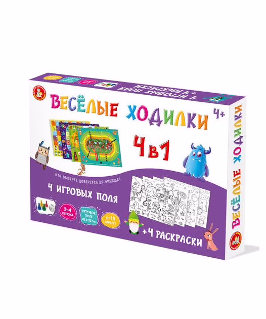 Весёлые ходилки 4 в 1 (ходилка-раскраска)