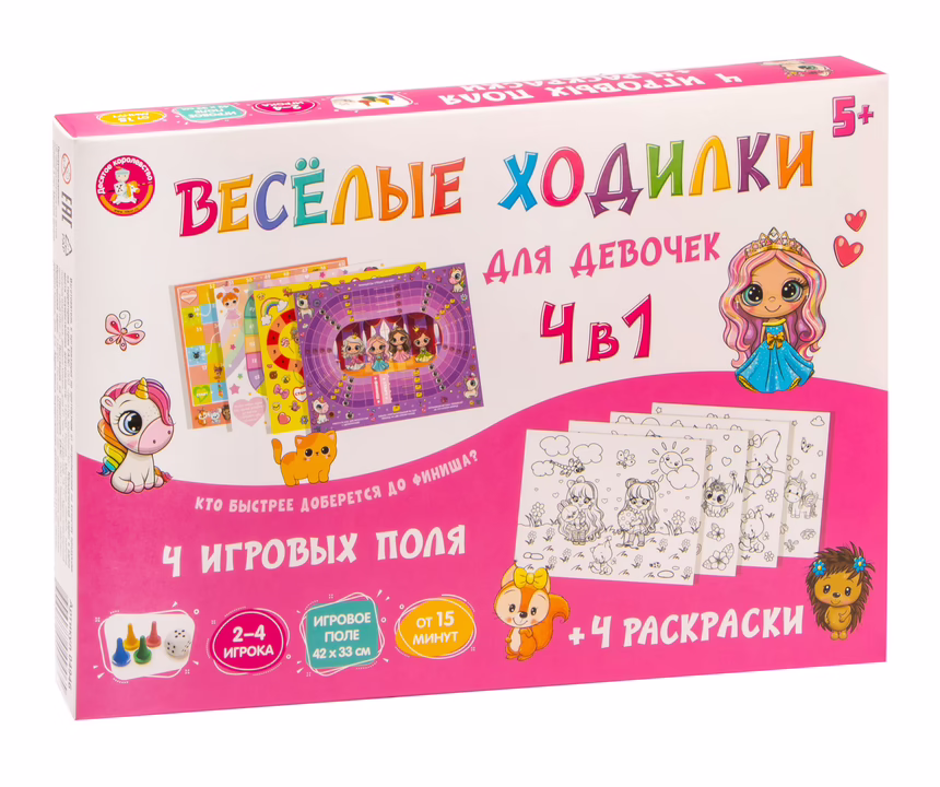 Настольная игра для девочек "Весёлые ходилки" 4 в 1 – это целый набор игр для интересного досуга.