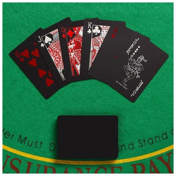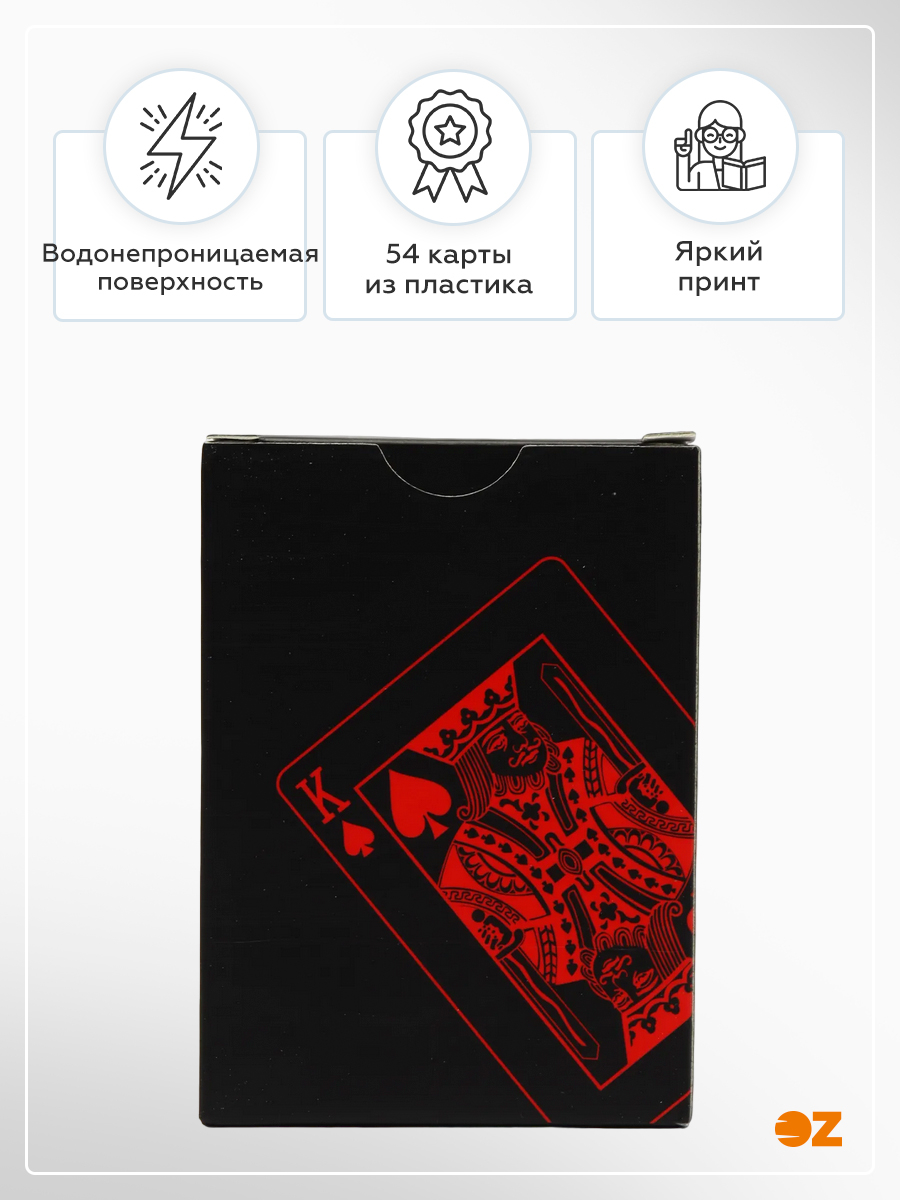 Водонепроницаемые карты с рубашкой черного цвета выполнены из прочного пластика с ламинированным покрытием.