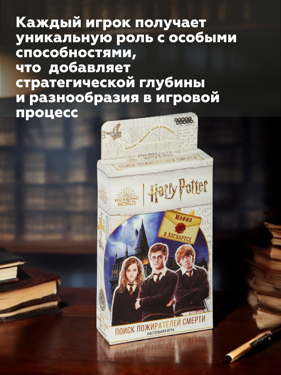 "Гарри Поттер. Поиск пожирателей смерти" – это социальная настольная игра, в основе которой лежит всемирно известная "мафия". В зависимости от того, какая выпадет роль, вам придётся либо задействовать дедуктивные навыки, либо стараться запутать оппонентов с помощью хитрости. Чем больше компания, тем больше в игре будет разнообразных персонажей – собирайте друзей и родственников, магическое веселье обеспечено!
