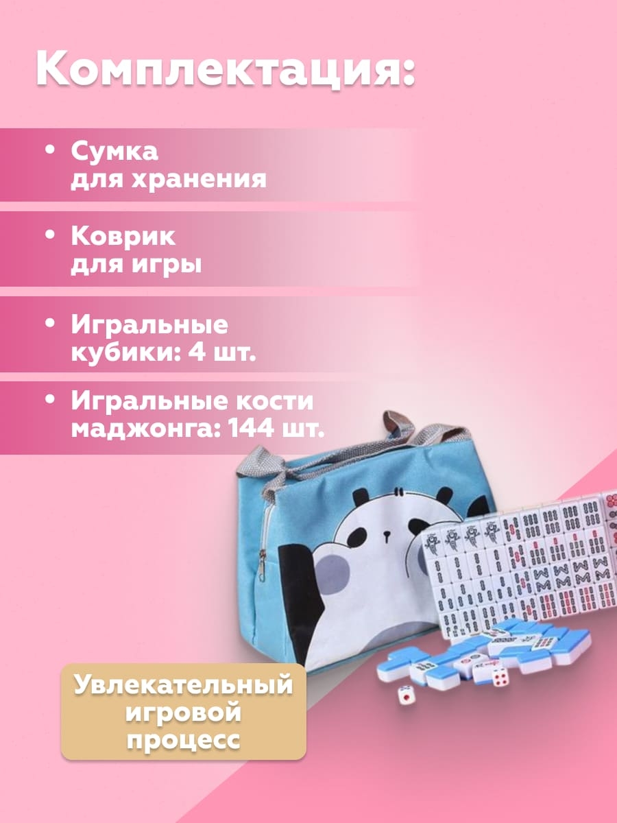 сумка для хранения - 1 шт., коврик для игры - 1 шт., игральные кубики - 4 шт., игральные кости маджонга - 144 шт.