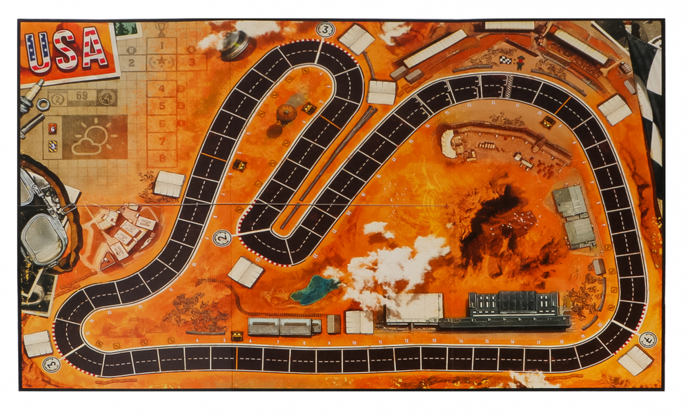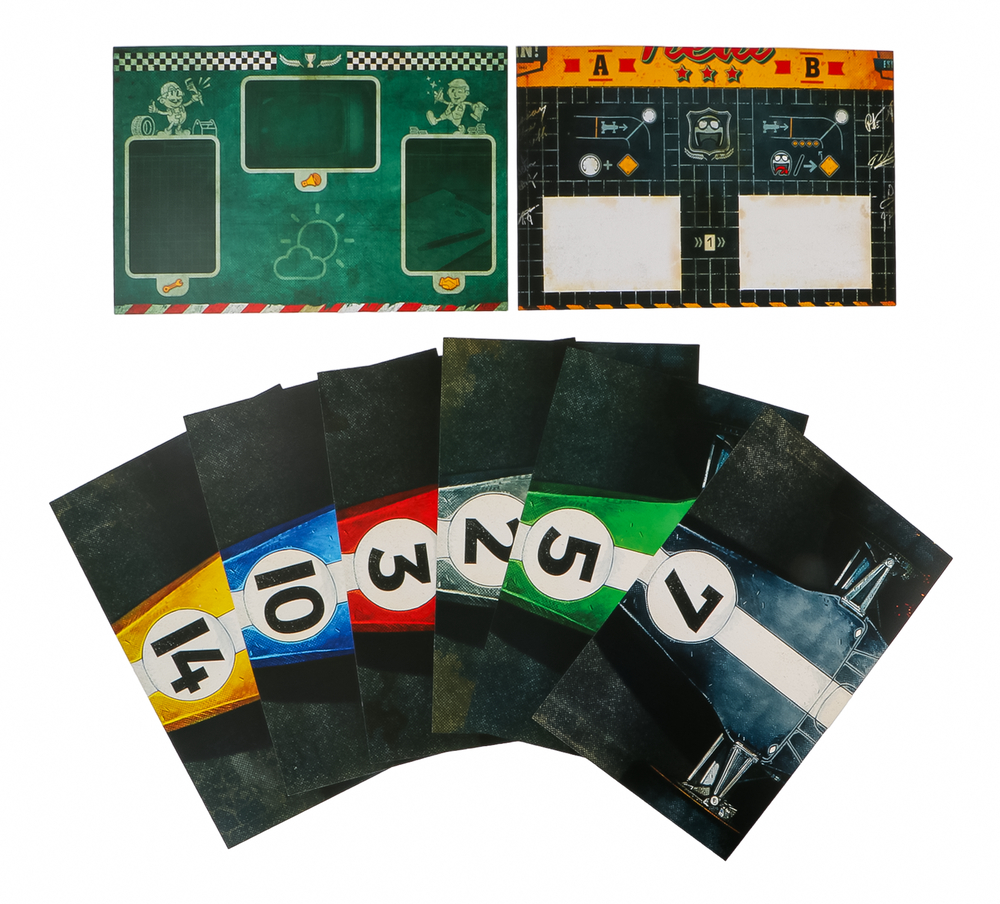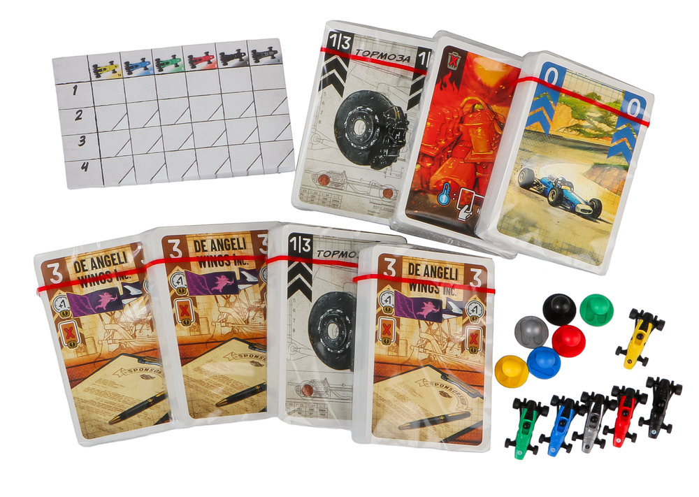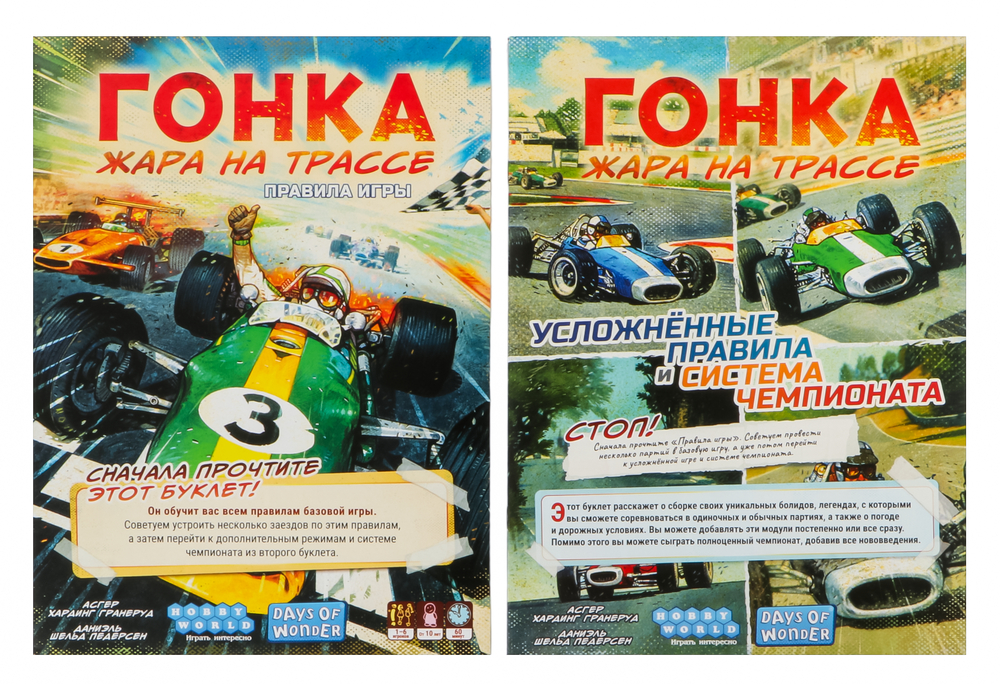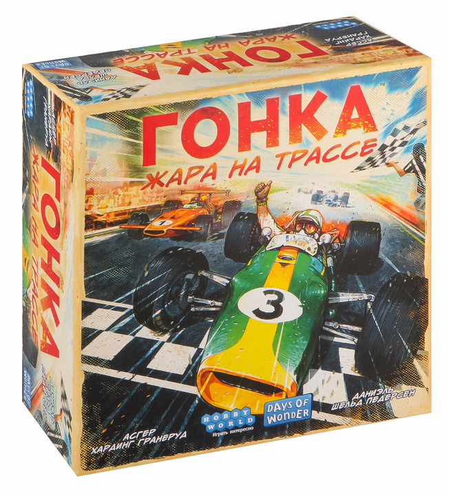 В настольной игре "Гонка. Жара на трассе" вас ждёт скорость, скорость и ещё раз скорость! Перенеситесь в мир автоспорта 60-х годов, сядьте за руль собственного болида и станьте героем всех гоночных треков! Но помните, что "газ в пол" – не единственная стратегия, которой нужно придерживаться: хватит ли резины на ещё один занос? Не накроется ли перегретый двигатель в самый неподходящий момент? Да и хватит ли вам квалификации?