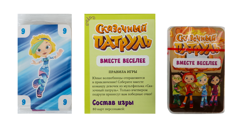 "Сказочный патруль. Вместе веселее" – это простая и весёлая карточная игра с персонажами популярного одноимённого мультсериала. Эта игра не просто развлечёт юных настольщиков, но и поможет им развить навыки счёта, а также стратегически мыслить и планировать каждый свой ход!